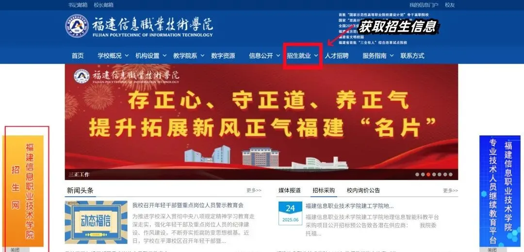 各院校招生官网搜索院校名称→进入官网→点击招生就业板块→进入招生网