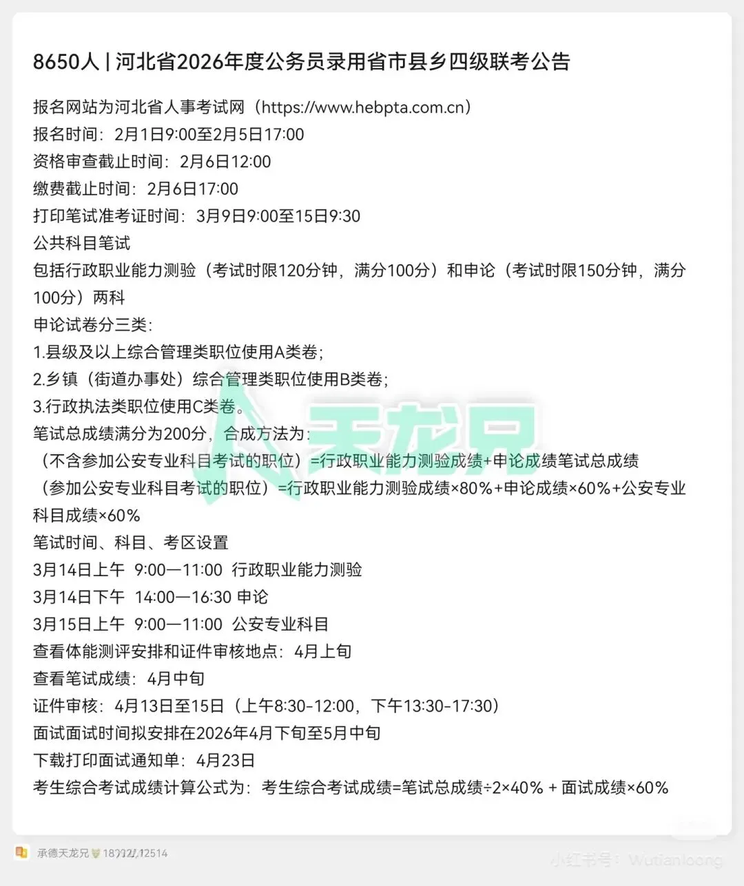 8650人 | 河北省2026年度公务员录用省市县乡四级联考公告