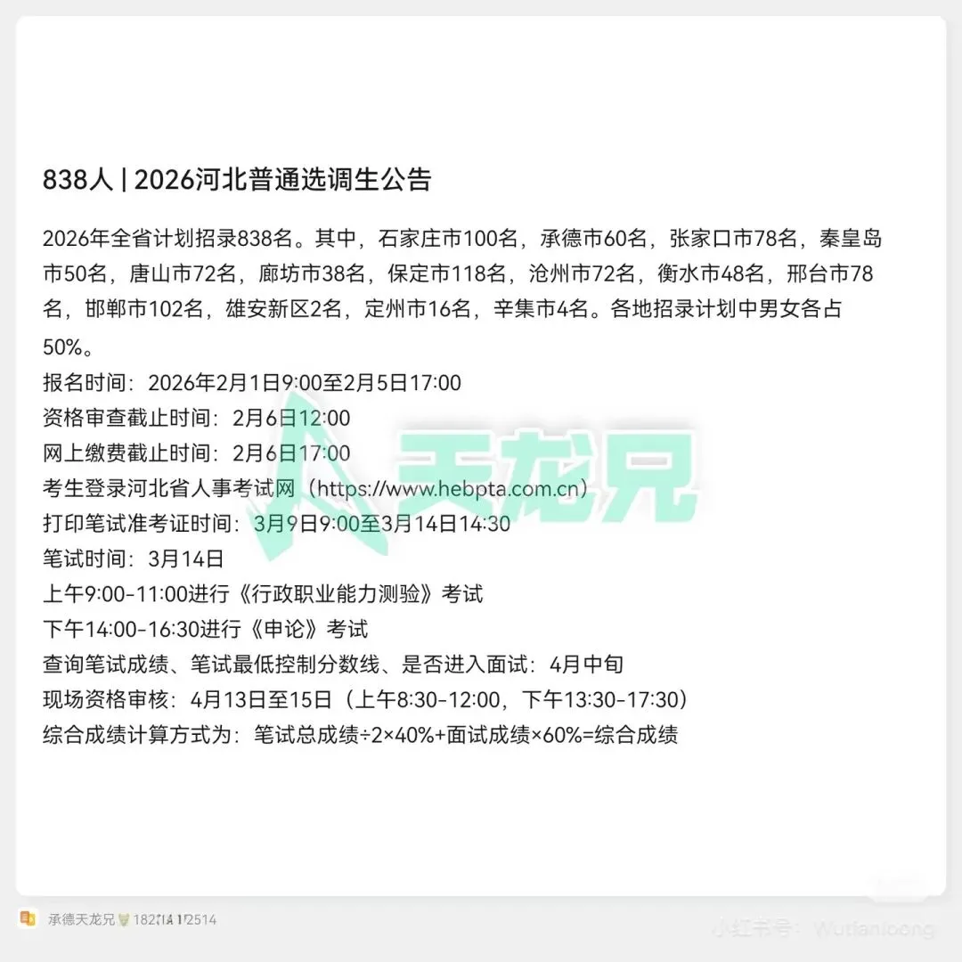 838人 | 河北省2026年度面向普通高校应届毕业生和服务基层项目人员招录选调生工作公告