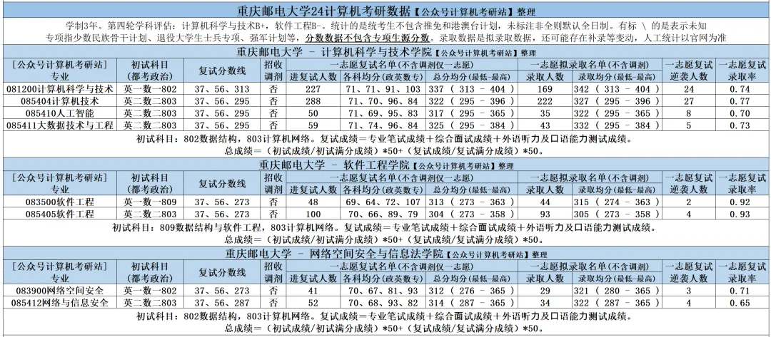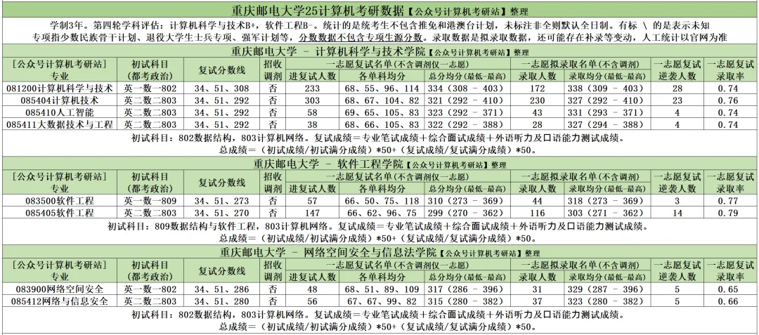 >重庆邮电大学25计算机考研数据
