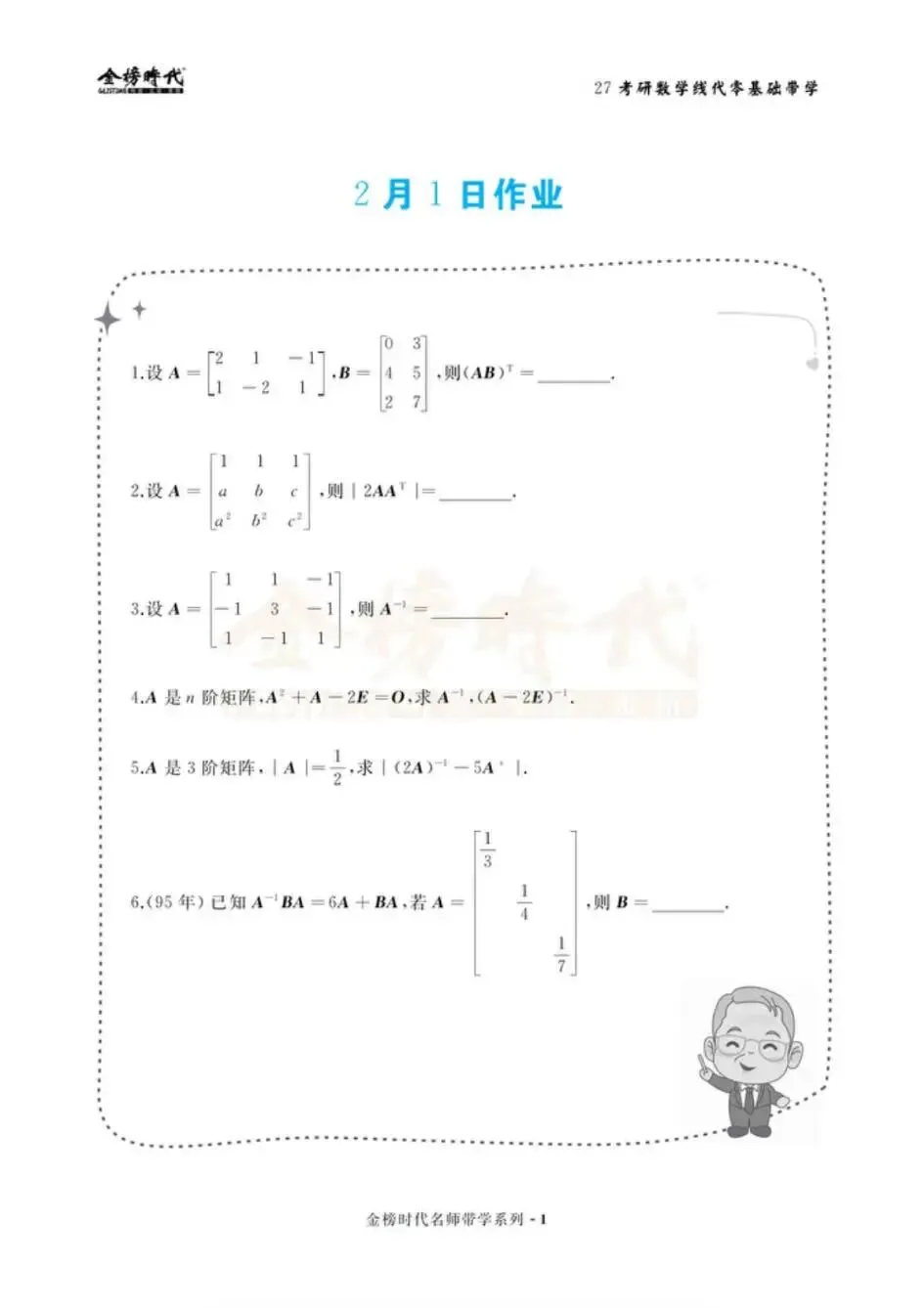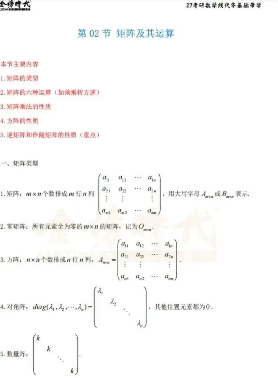 没跟着今天直播的同学也不用担心,小榜为了帮大家及时巩固今日所学、查漏补缺,特意整理了核心内容和课后习题,题型完全贴合今日直播考点,覆盖矩阵及其运算,练完就能快速检验学习效果,及时弥补薄弱点~