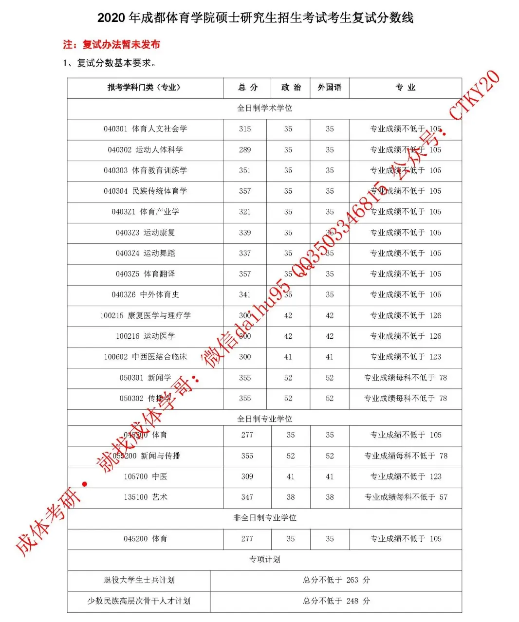 2、成都体育学院考研最新复试分数线
