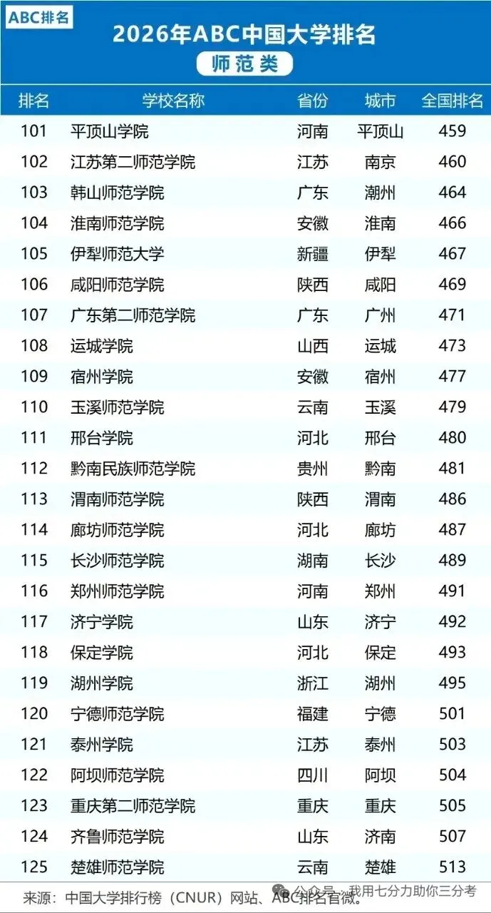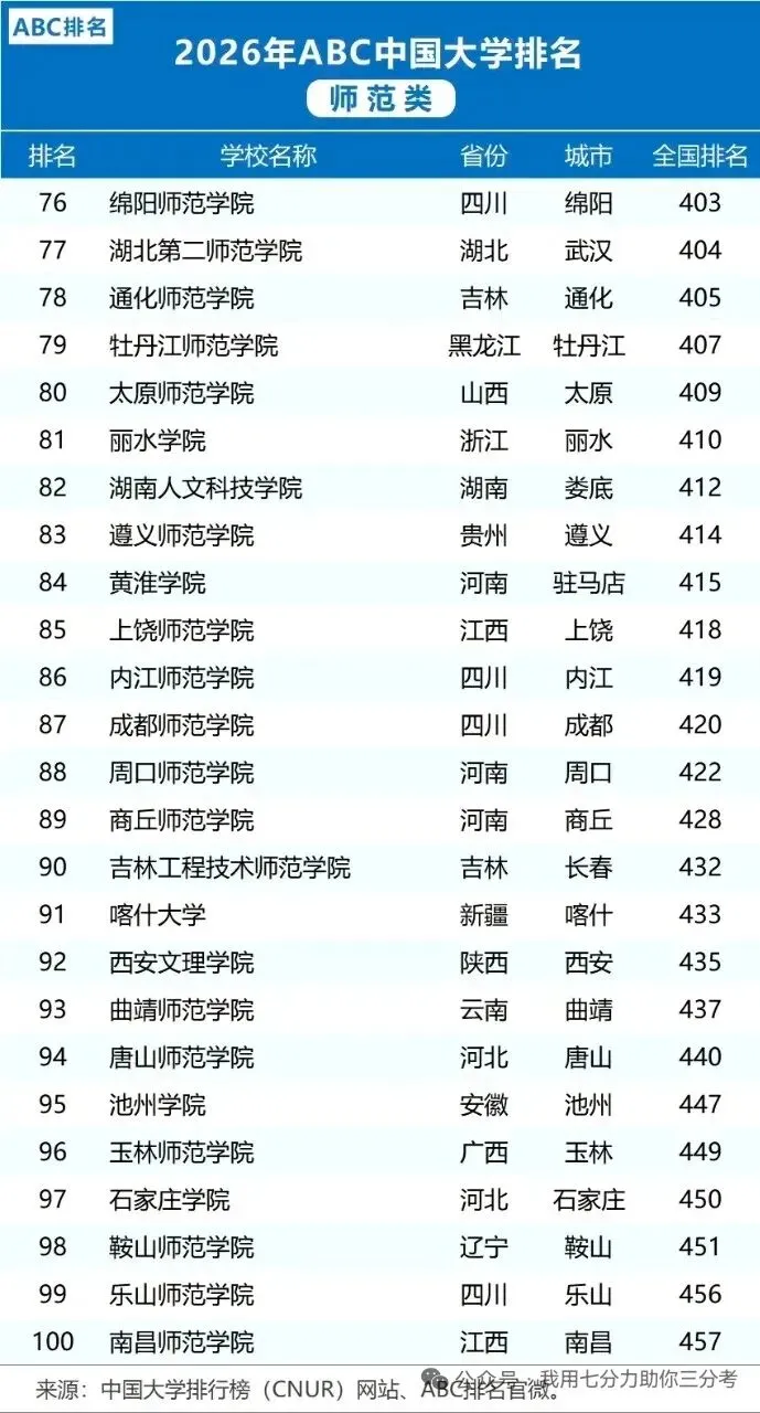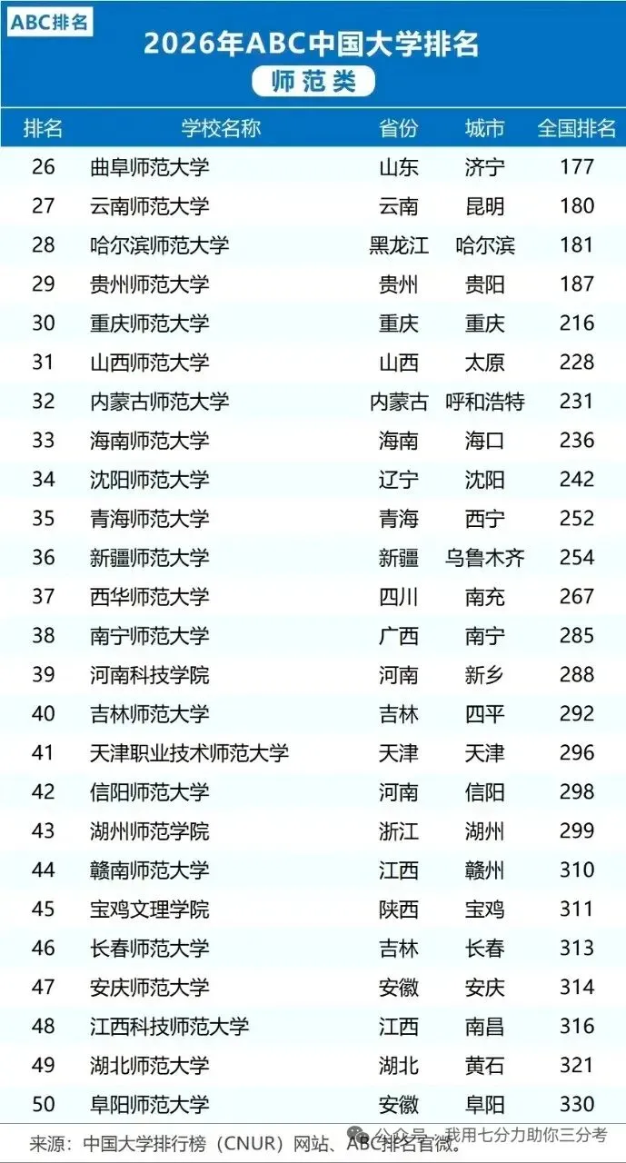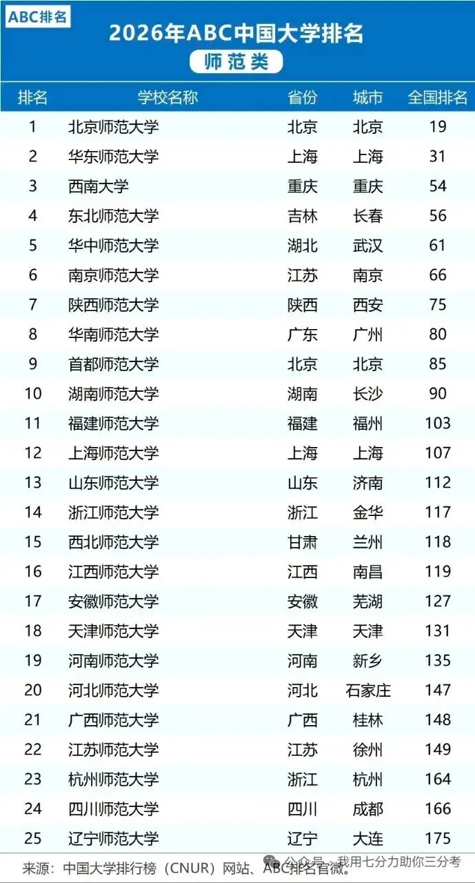 【升学就业】2026中国师范类大学排名(ABC排名)