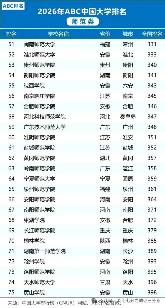 >【升学就业】2026中国师范类大学排名(ABC排名)
