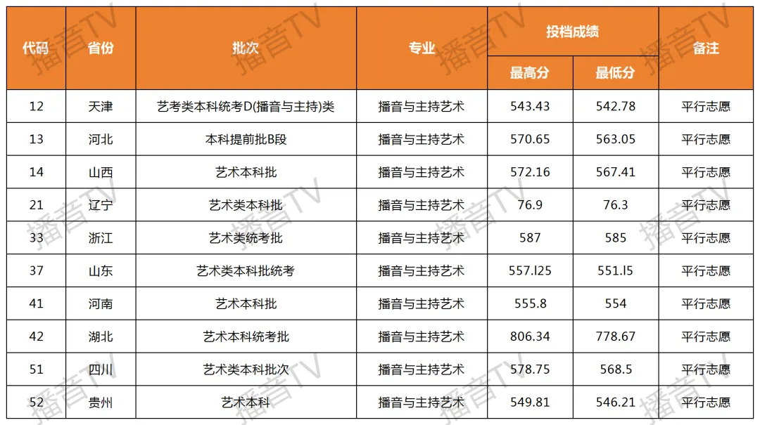 >湖北大学2025年播音与主持艺术专业各省录取分数线