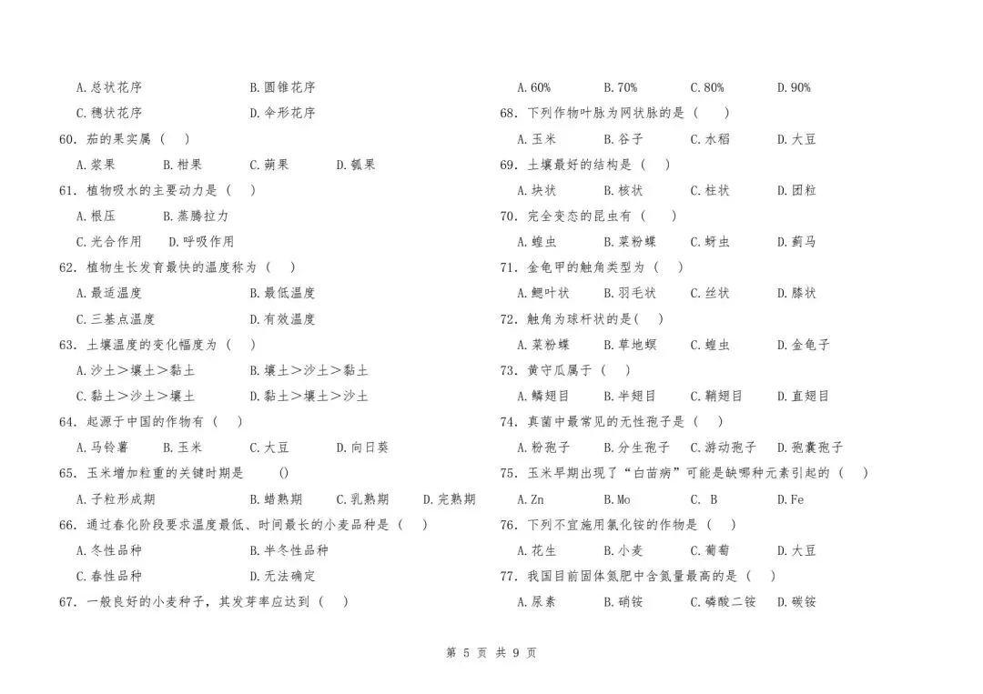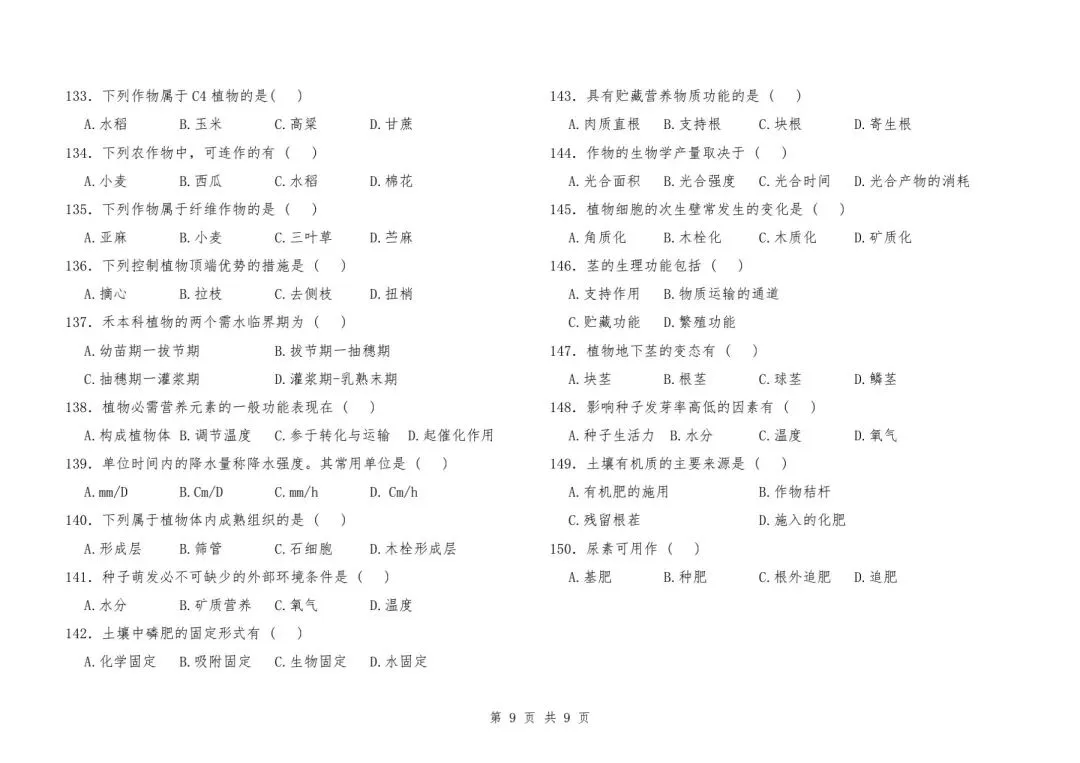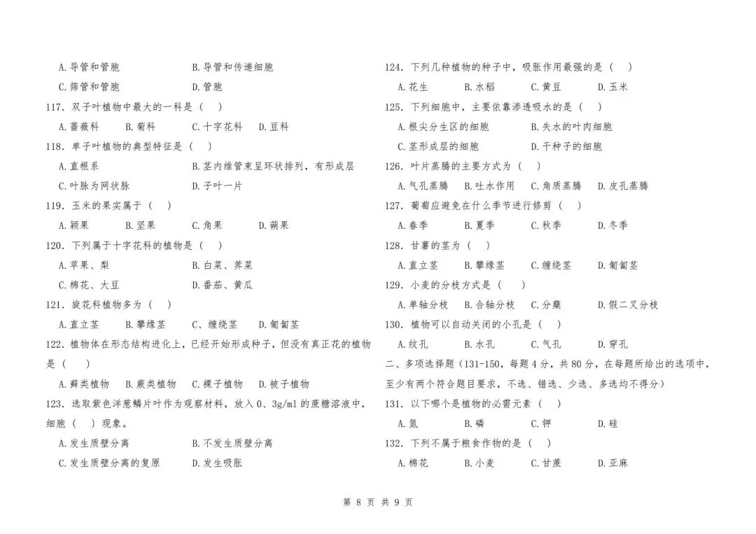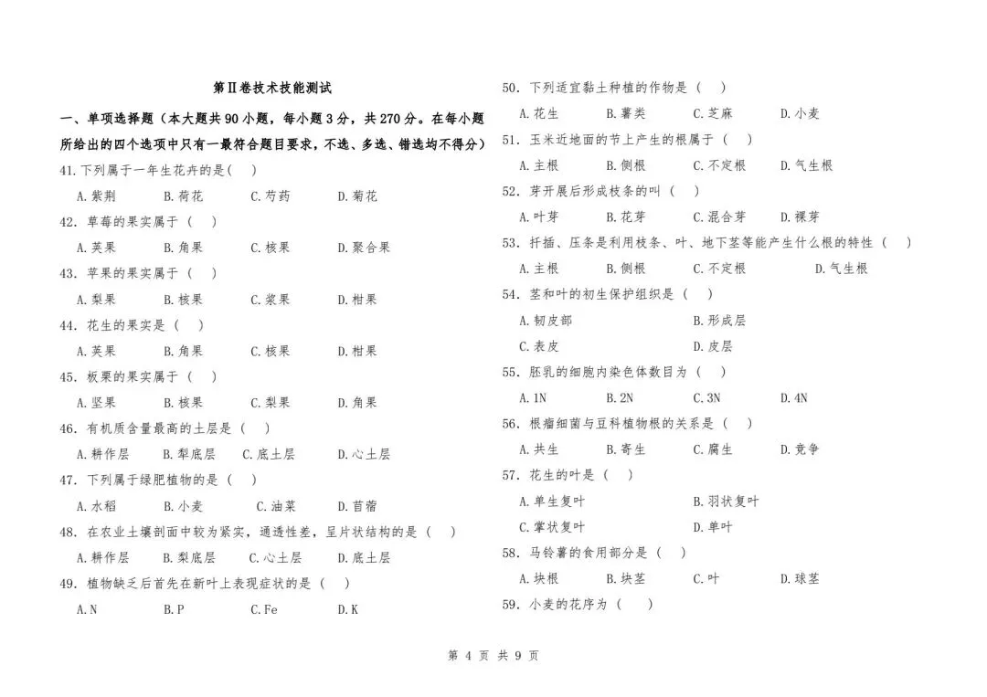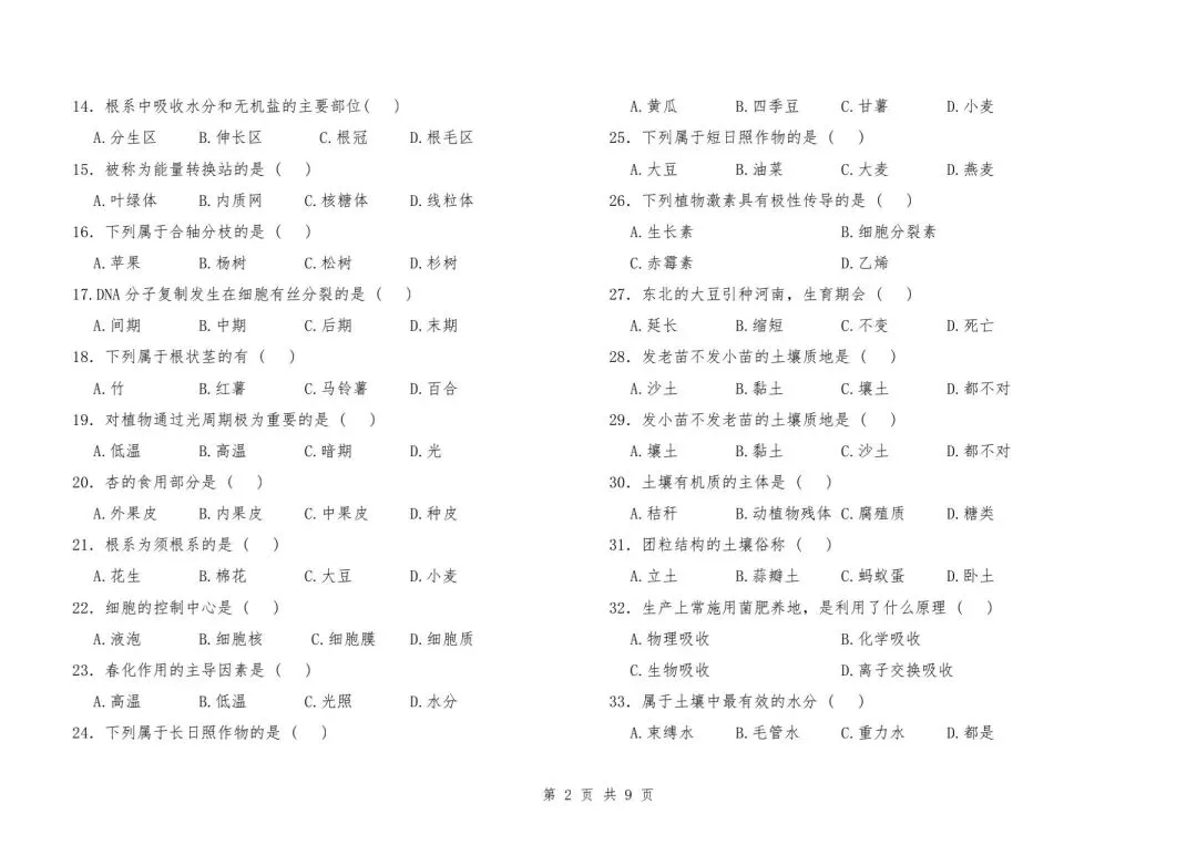 >【农林】河北省高职单招考试—单招必刷卷(一)