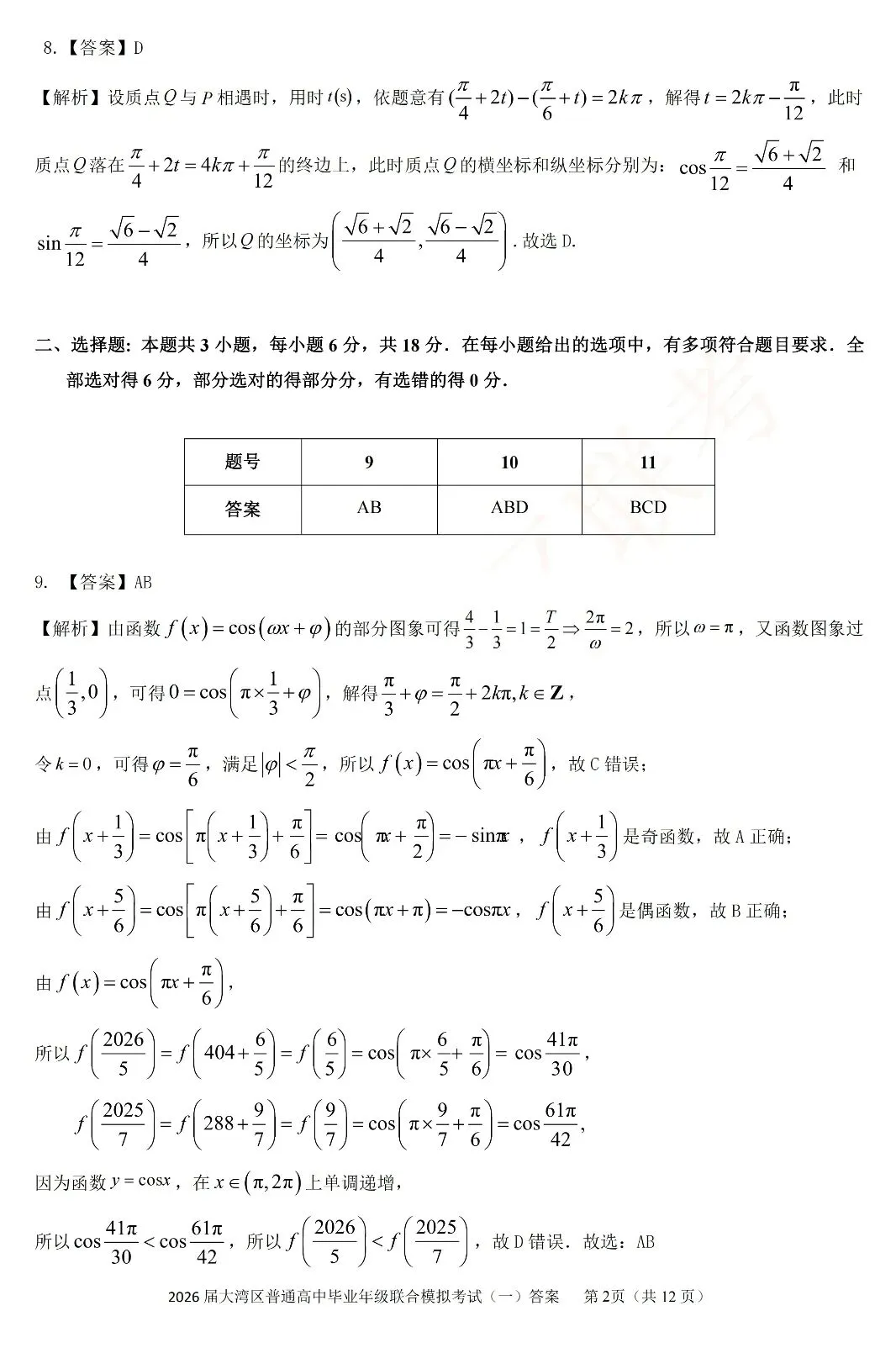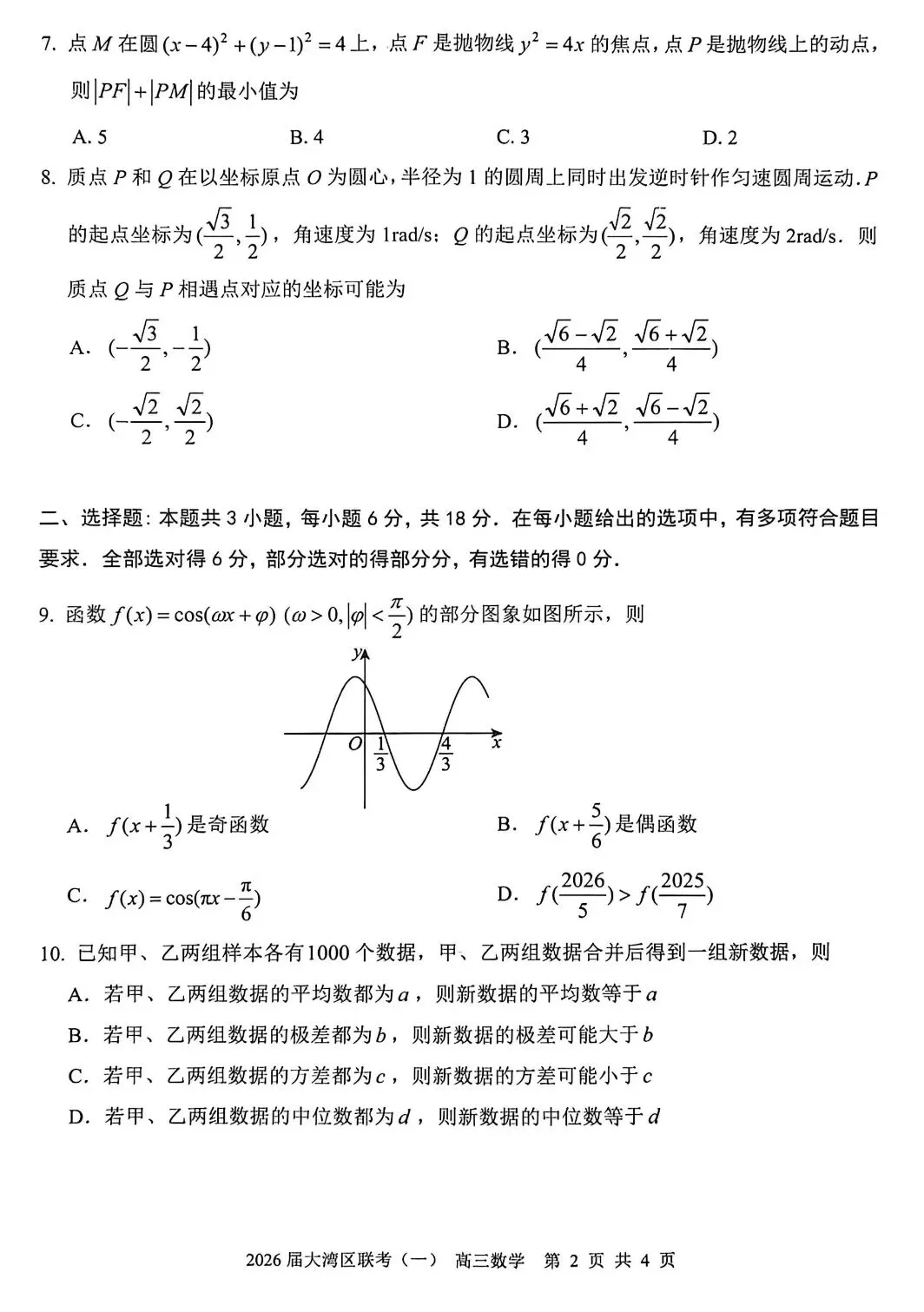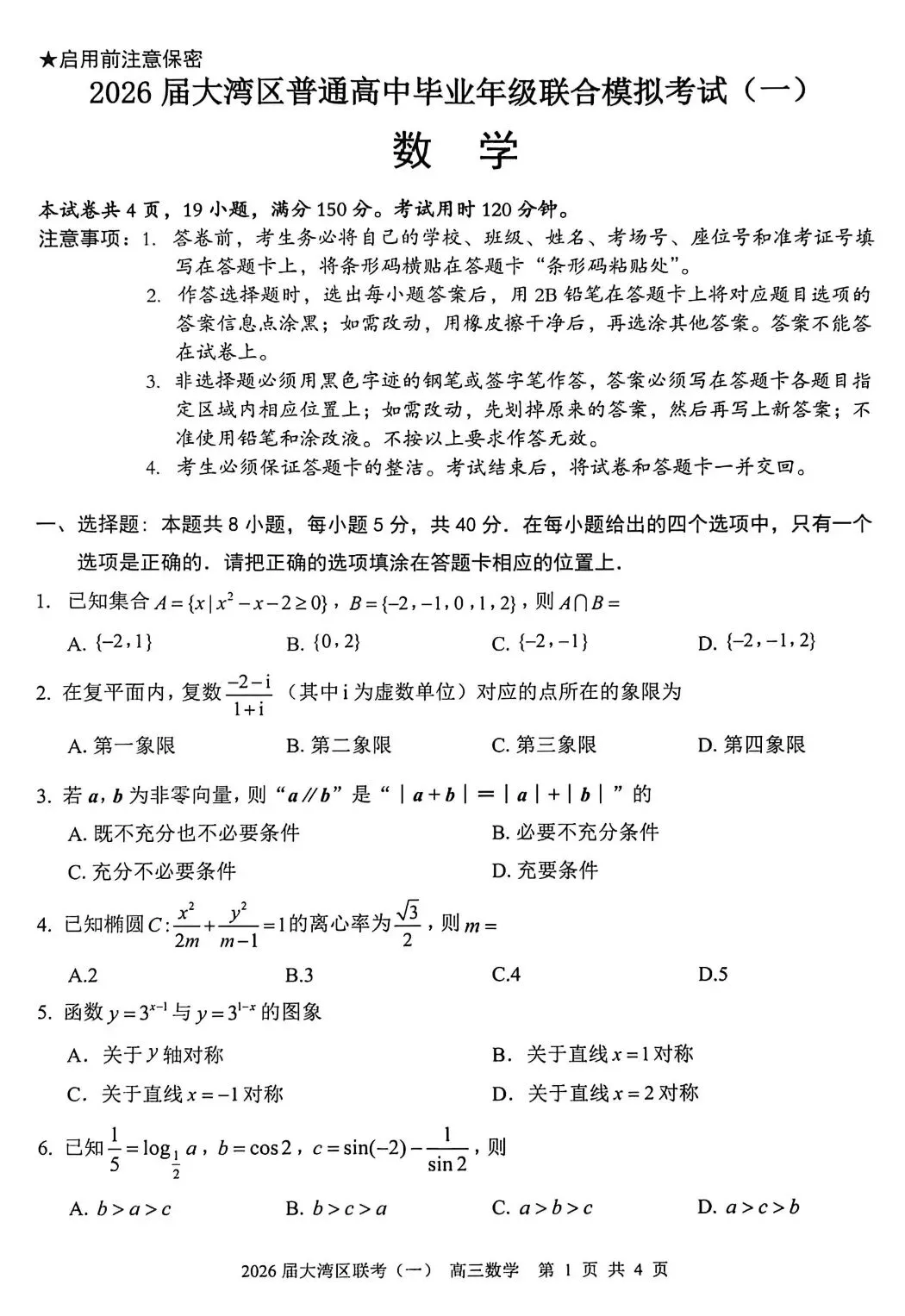 >大湾区2026届高三上学期期末考试数学试题+参考答案
