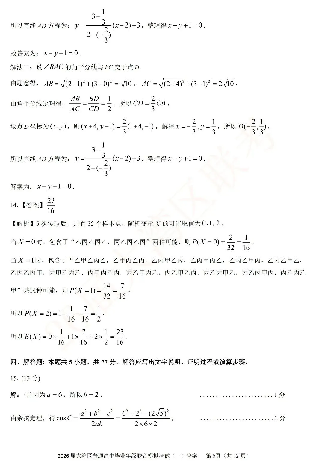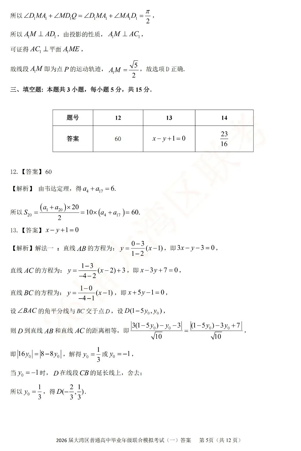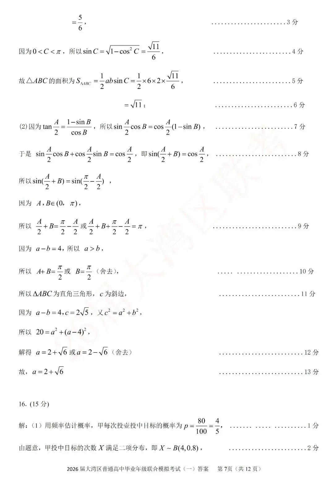 >大湾区2026届高三上学期期末考试数学试题+参考答案