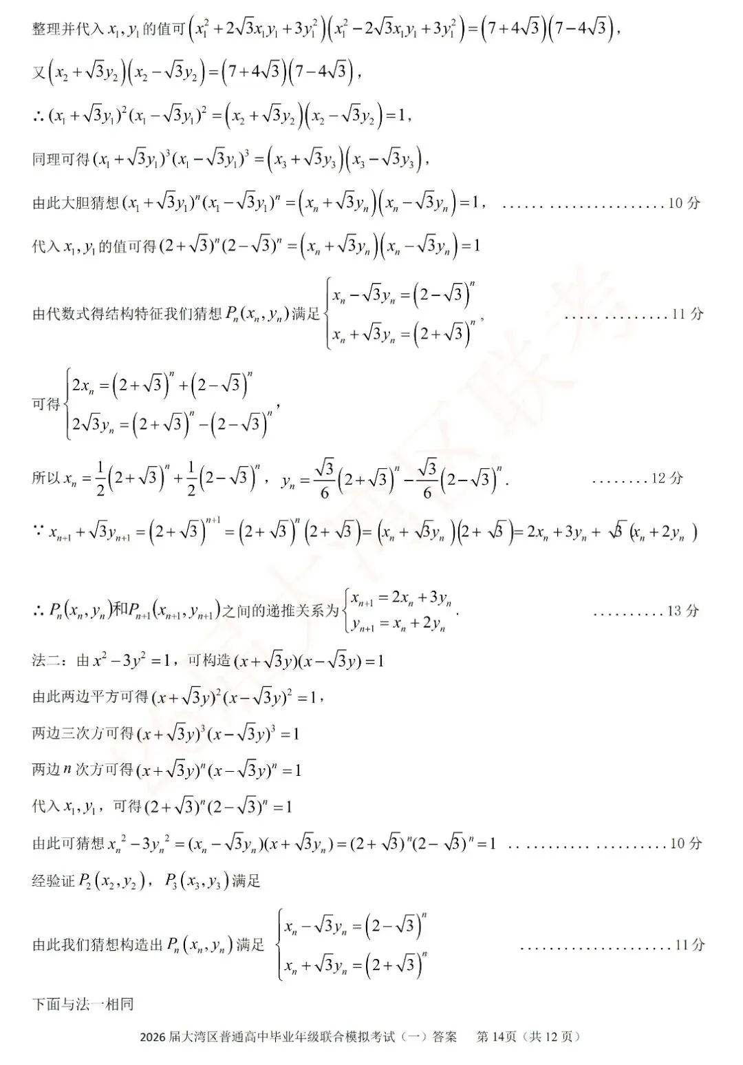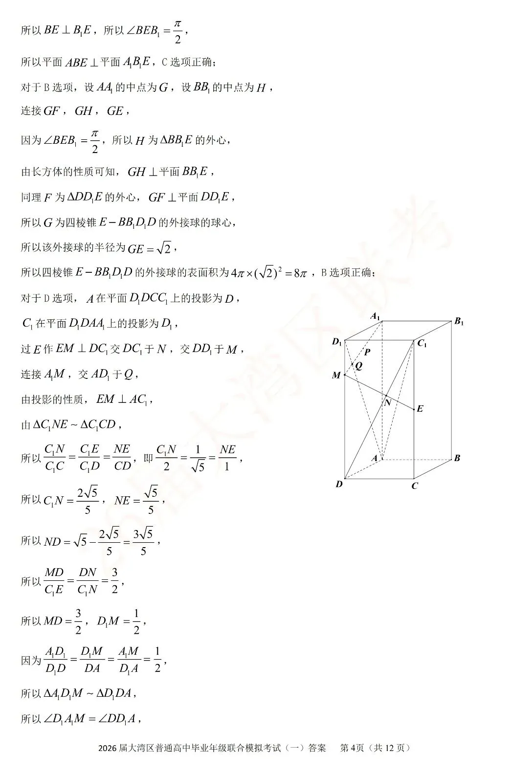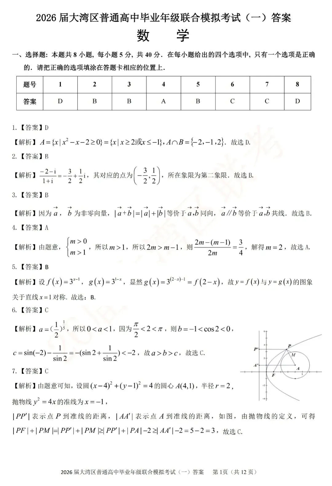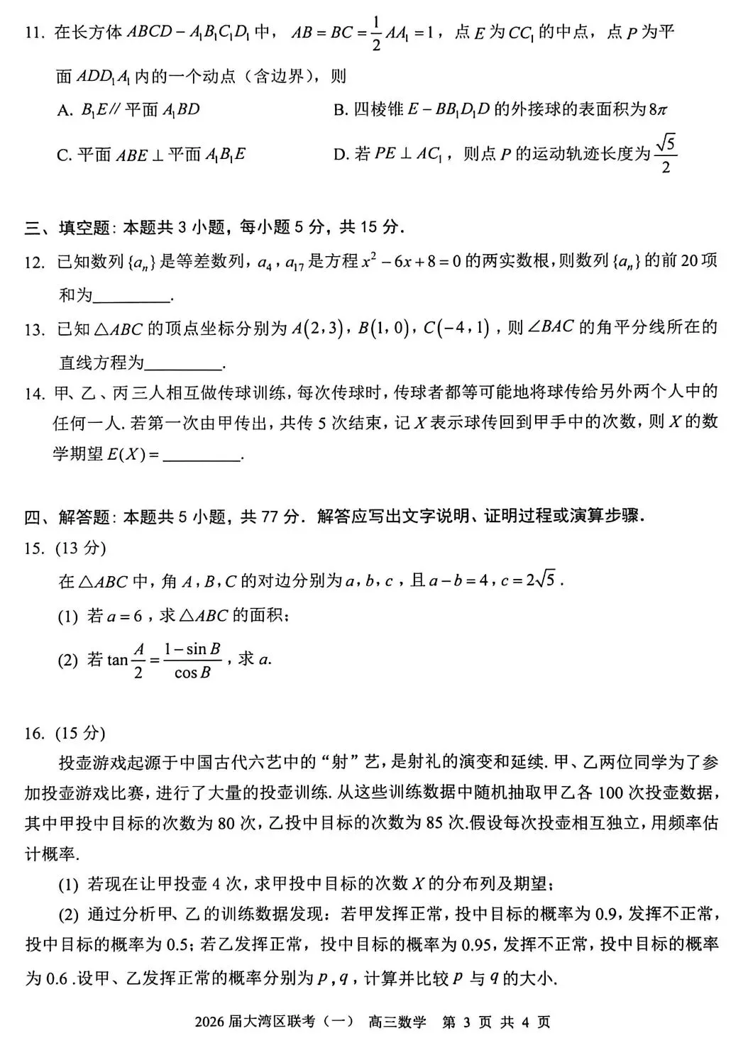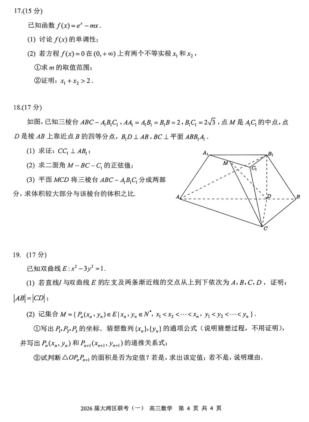 大湾区2026届高三上学期期末考试数学试题+参考答案