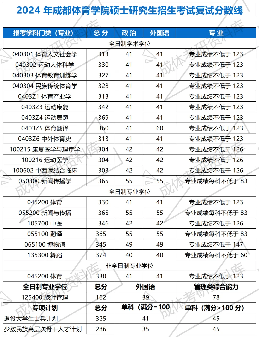 2024年成体考研复试分数线