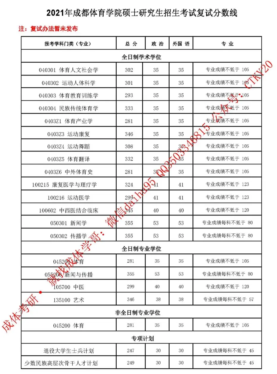 2、成都体育学院考研最新复试分数线