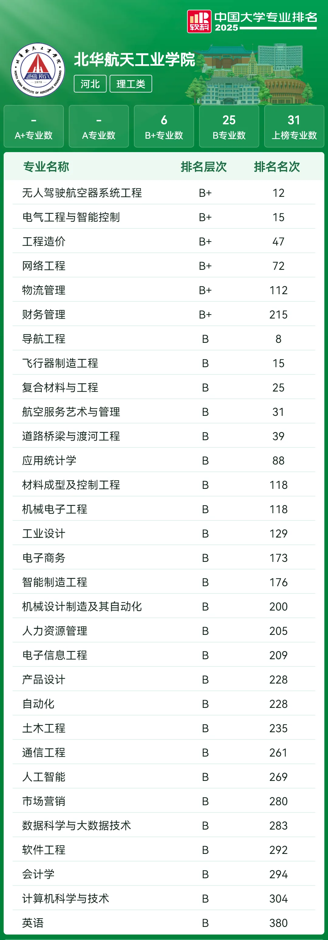 郑州航空工业管理学院(1949年成立):飞行器质量与可靠性等3个专业全国Top10,民航维修领域形成“郑航系”技术壁垒,行业认可度极高。