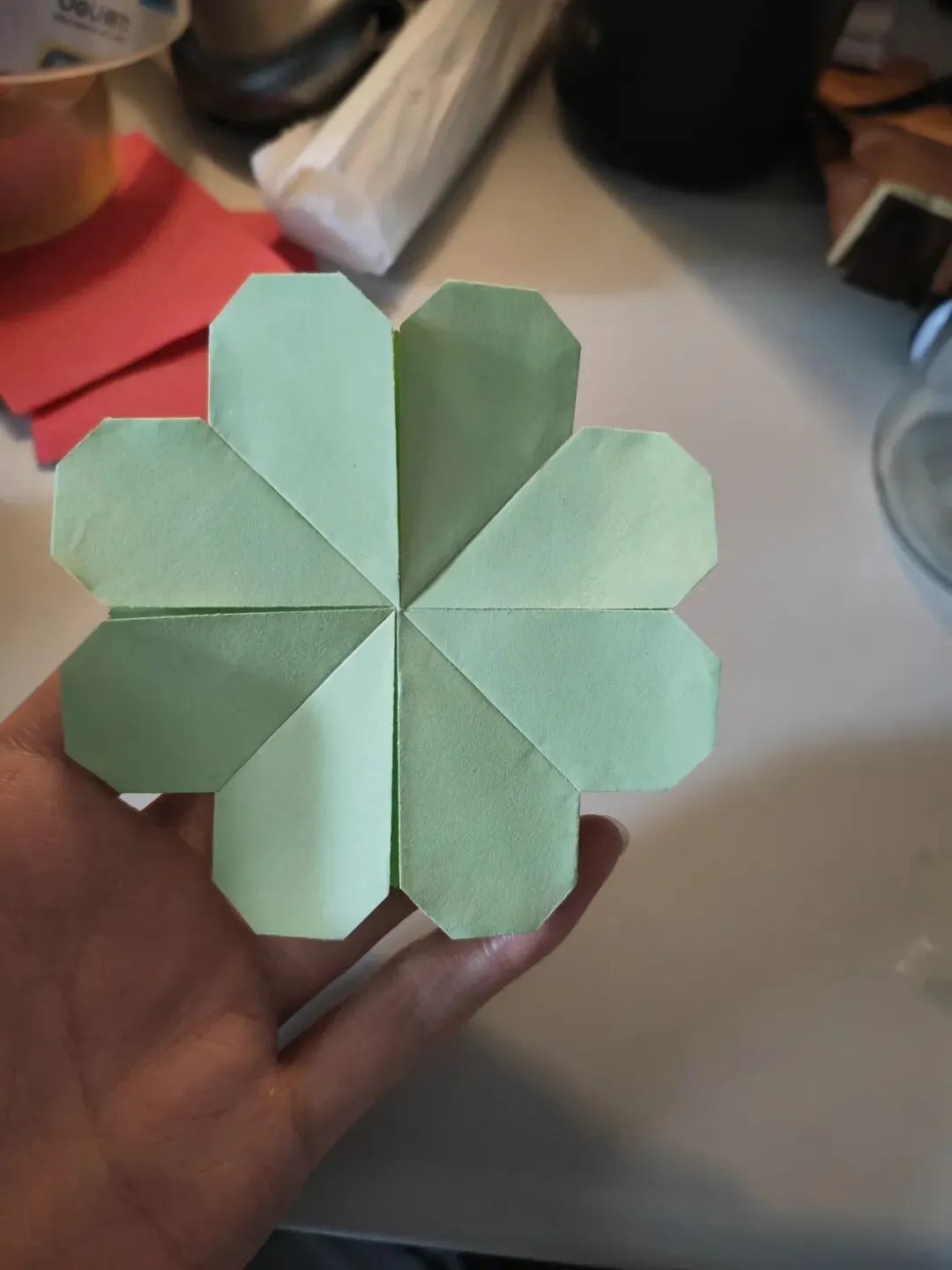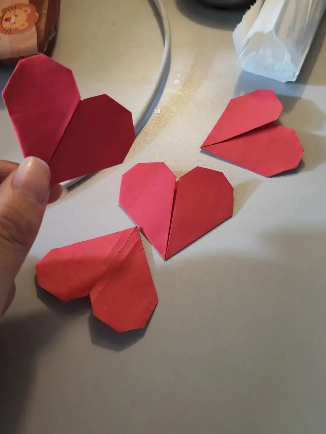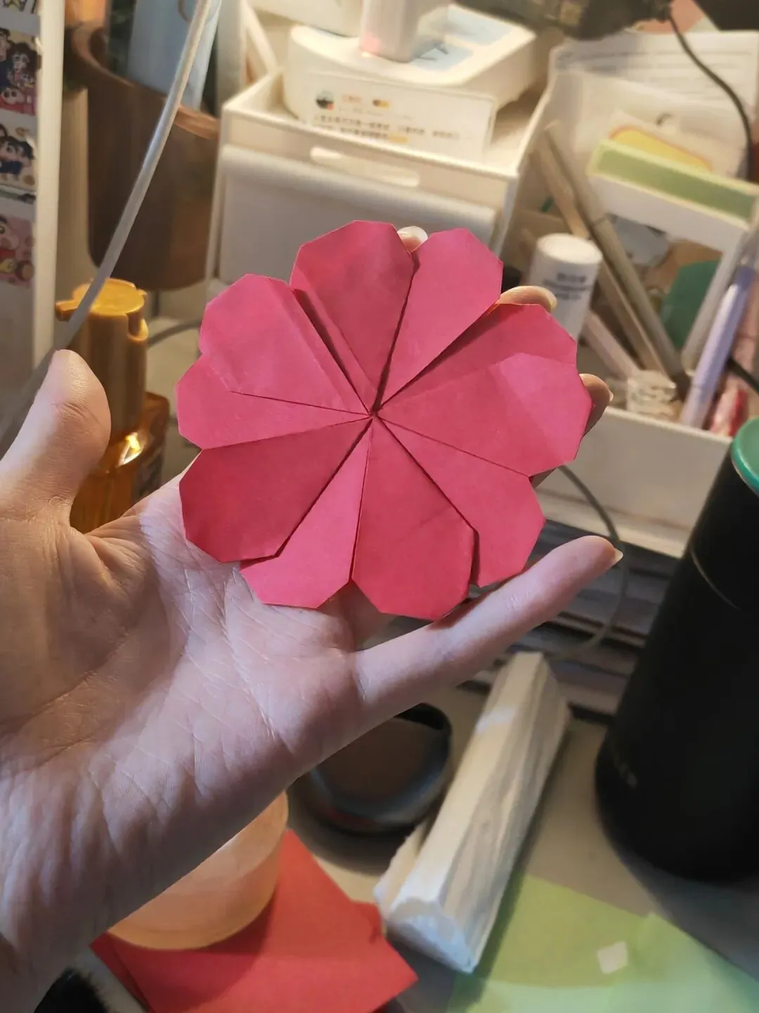 有尝试手绘,折纸(真的是一种超级解压的方式,很开心呀~)灵机一动:折纸折好没有去处,火速下单了软磁片,自制成了冰箱贴贴在柜子上🥰