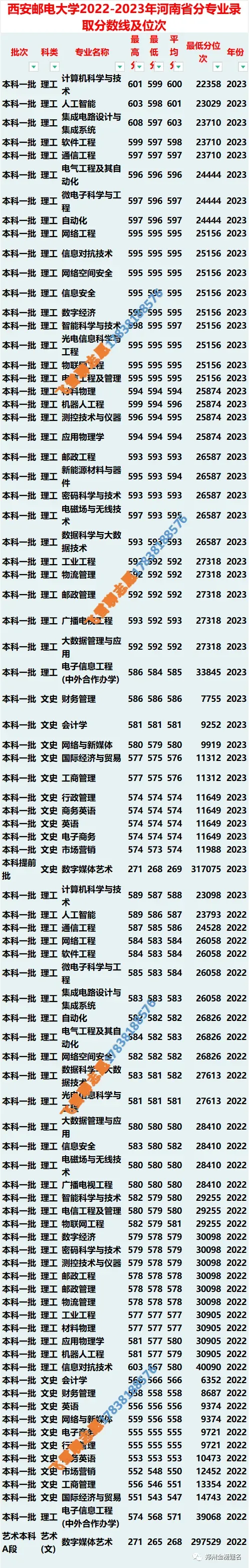 西安邮电大学2021-25年河南录取分数线、位次及选科