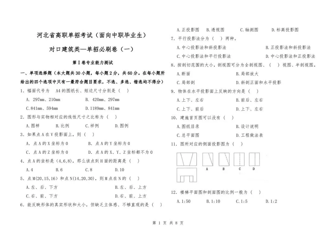 >【建筑】河北省高职单招考试—单招必刷卷(一)