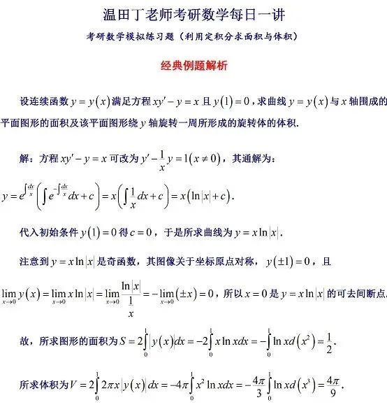 >考研数学模拟练习题(利用定积分求面积与体积)