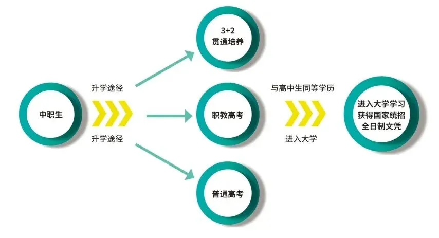 学生可在我校就读升学班,通过职教高考、中高职贯通、单招/对口升学、免试保送、申请留学等多元化升学途径升入本科、专科院校就读深造,与普通高中升入大学待遇完全一致,学生毕业发放教育部电子注册统招大专或本科毕业证。