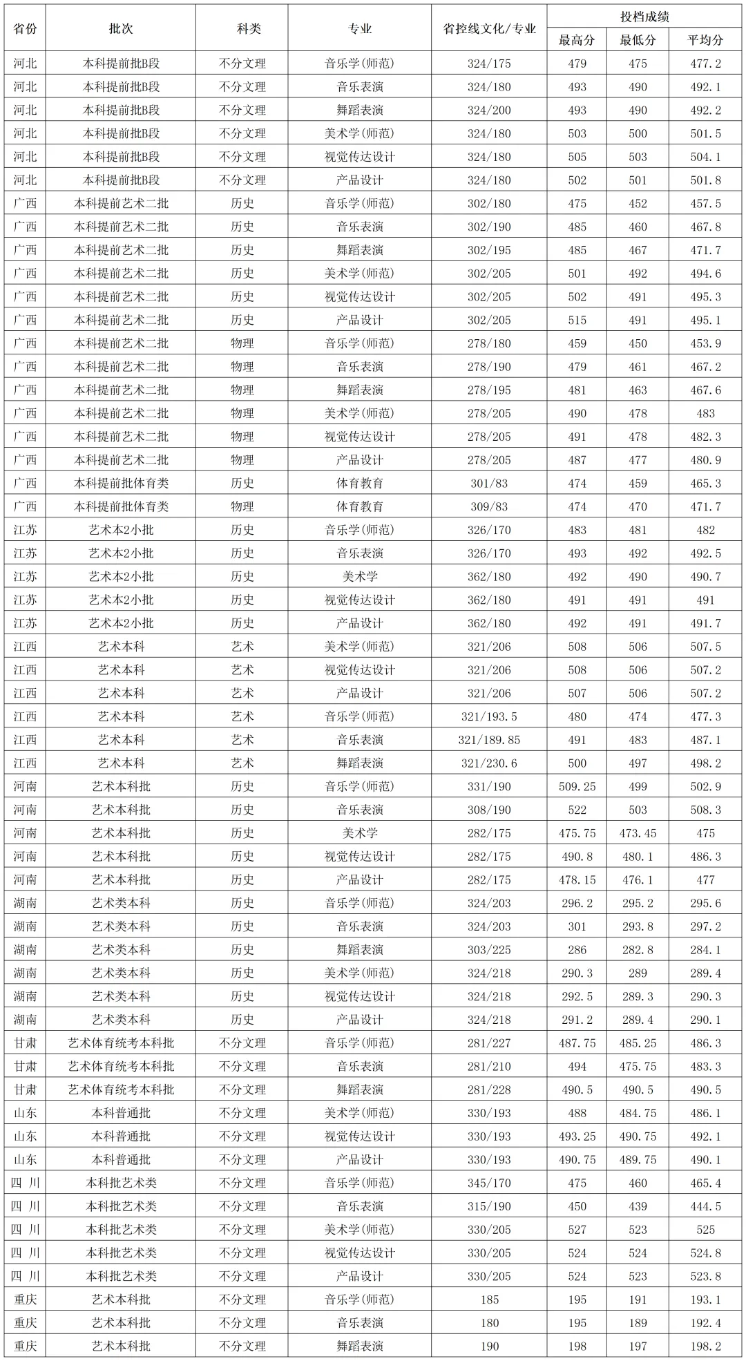 北部湾大学2025年艺术类在各省各专业录取分数线