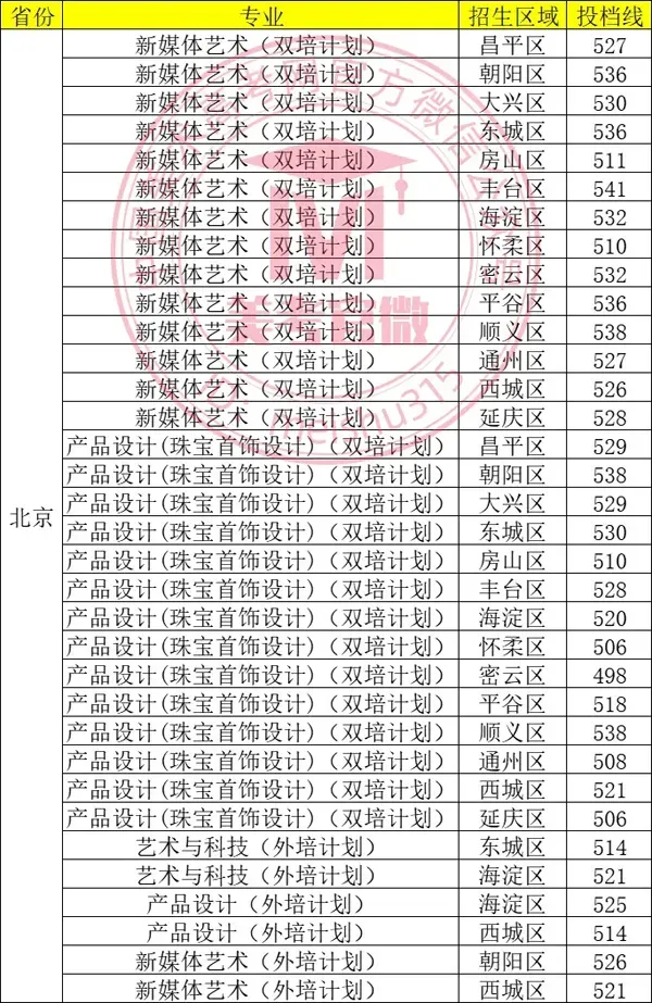 面向北京市招生的外培计划,要求外语单科成绩不低于90分,按照北京市美术类综合分录取。