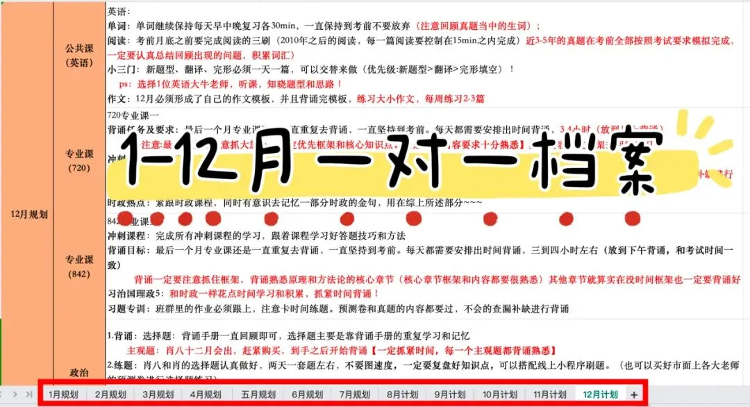 1.提前规划:根据考生的实际情况和目标专业,报班即为考生制定个性化的入班学习档案,每月月初制定月度学习规划,合理安排学习时间和内容,让考生在备考过程中更加有条不紊。