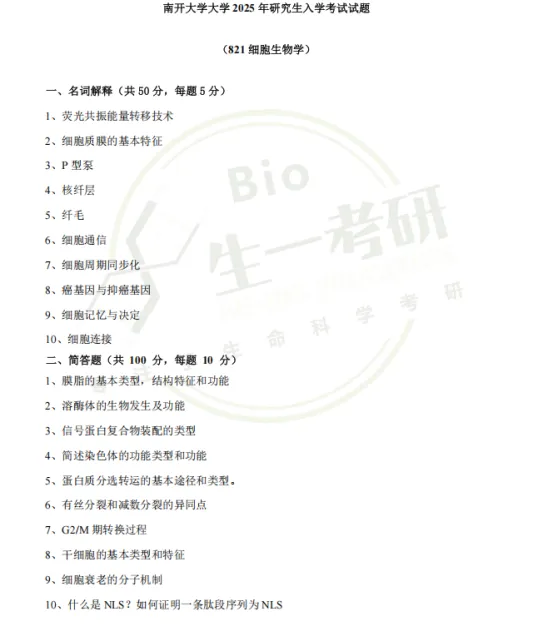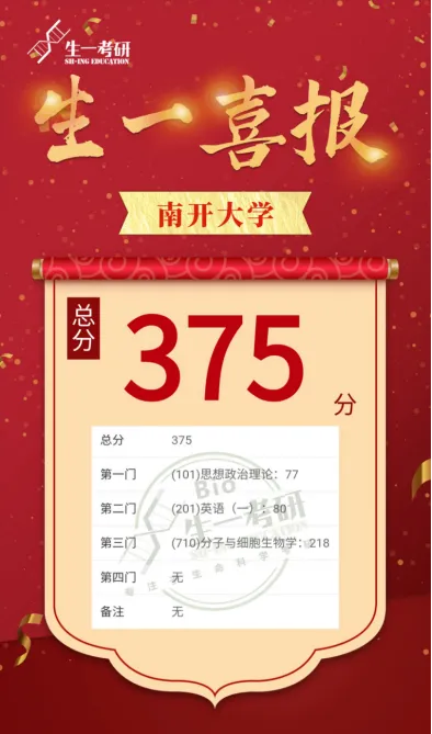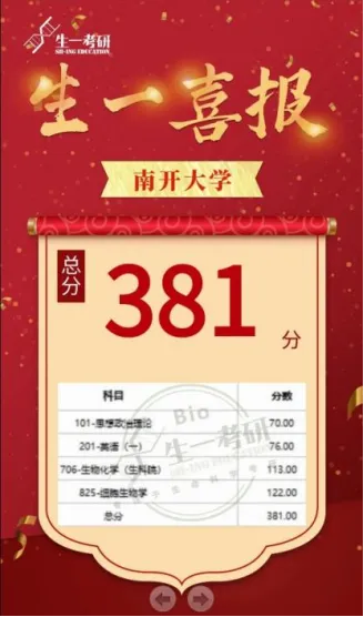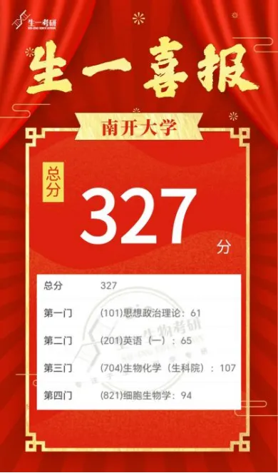 根据往年真题的情况,南开大学的题目一直比较稳定且简单,特别是生化,往年上岸学员的成绩均分在110分左右;细胞的题型也比较简单,不会出很刁钻的题目或者题型。