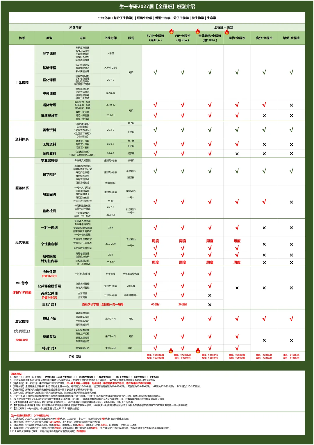 生一生物考研【27全程班】已经开课!现在报名即可获得一对一专业课辅导!