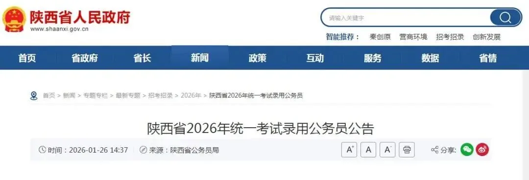 近日,陕西省公务员局发布陕西省2026年