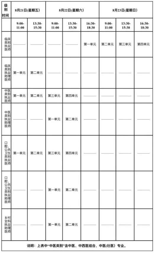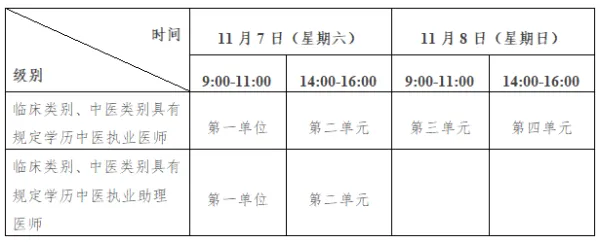 2026年在医师资格考试临床类别、中医类别具有规定学历中医实施医学综合考试第二试。在安徽考区已报考当年医师资格考试,实践技能考试合格成绩在有效期内,未通过医学综合考试第一试且无违纪违规行为的考生,或医学综合考试第一试缺考及未缴纳考试费的考生,可报名参加医学综合考试第二试,考试时间如下: