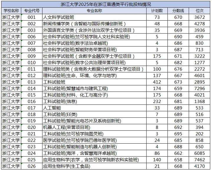 从整体数据来看,浙大在浙招生的核心专业分数线稳定在670分上下,位次区间也保持在较为集中的范围。