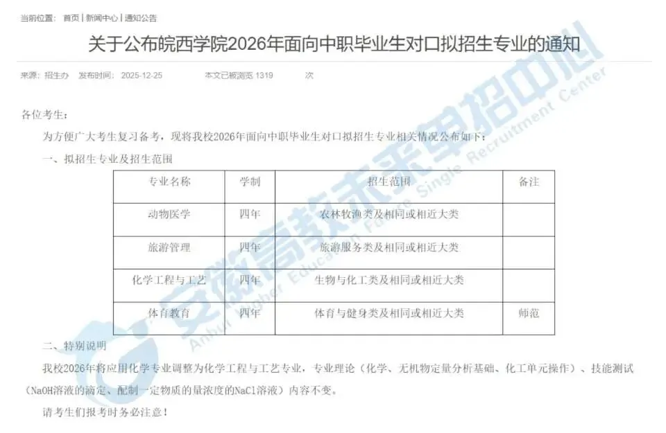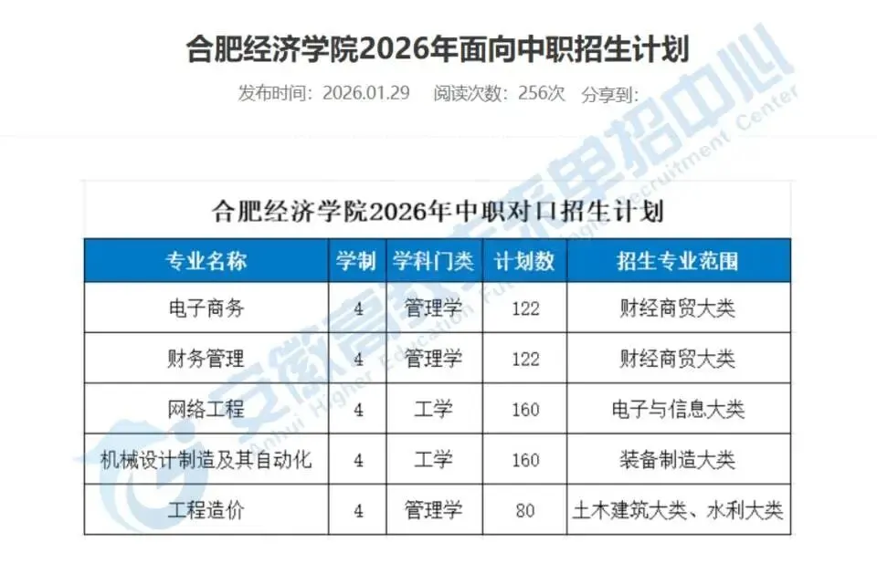 2026年安徽中职对口升学大动作不断!目前已有9所院校公布招生计划或专业,其中有多所院校调整专业设置、增减招生名额,备考学子速看这份干货汇总!