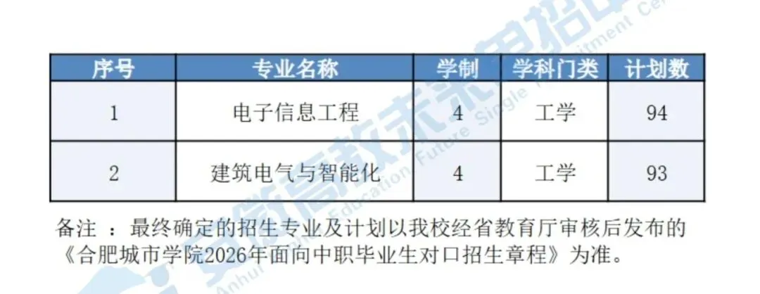 - 招生专业:电子信息工程(94人)、建筑电气与智能化(93人)