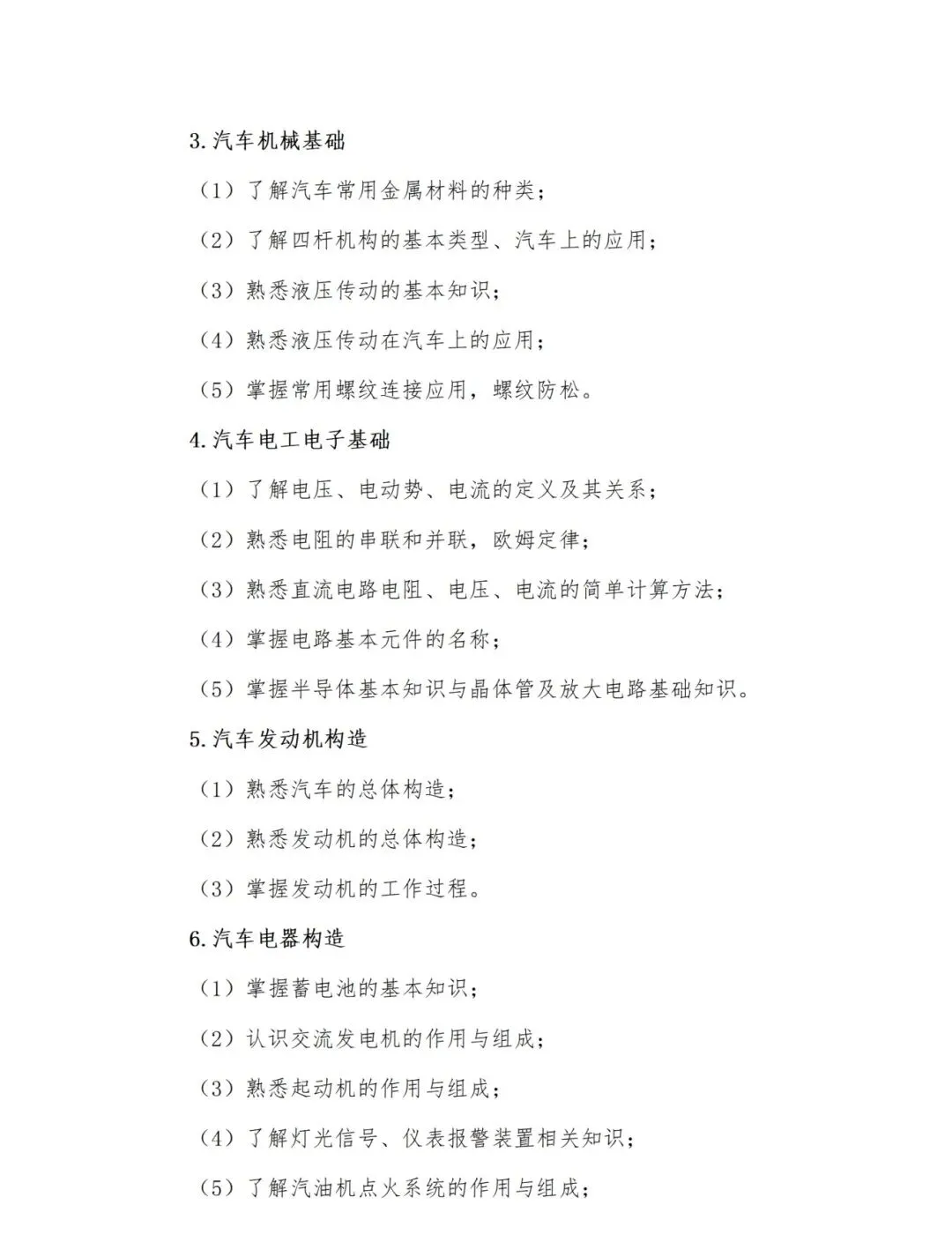 专业基础课程:汽车概论、汽车机械基础、汽车电工电子基础、汽车构造、汽车性能与商务评价、汽车维护、沟通与礼仪。