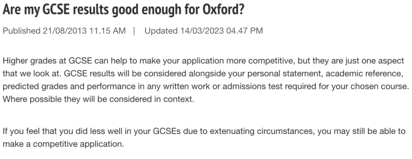 撇开“传言”,我们先直接看英国顶尖名校(G5)在官网上是如何界定IG/GCSE成绩要求的。
