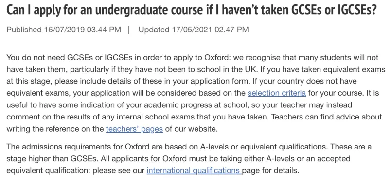 老师解读:牛津明确表示,如果你的教育背景本身就不包含IGCSE(例如你是高一才转入国际部),