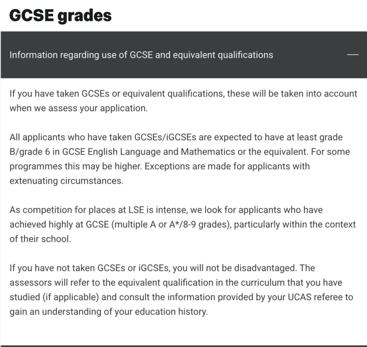 老师解读:LSE对没有IGCSE/GCSE的学生(如普高转轨)是友好的。但同样,它会在申请表里参考对标IGCSE同等水平的教育考试,并参考推荐信中对你教育背景和学术能力的描述。