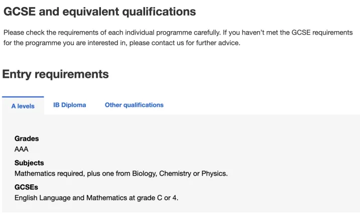 而以Biochemical Engineering BEng专业为例,对IGCSE的数学和英文的要求在Grade C/4以上。