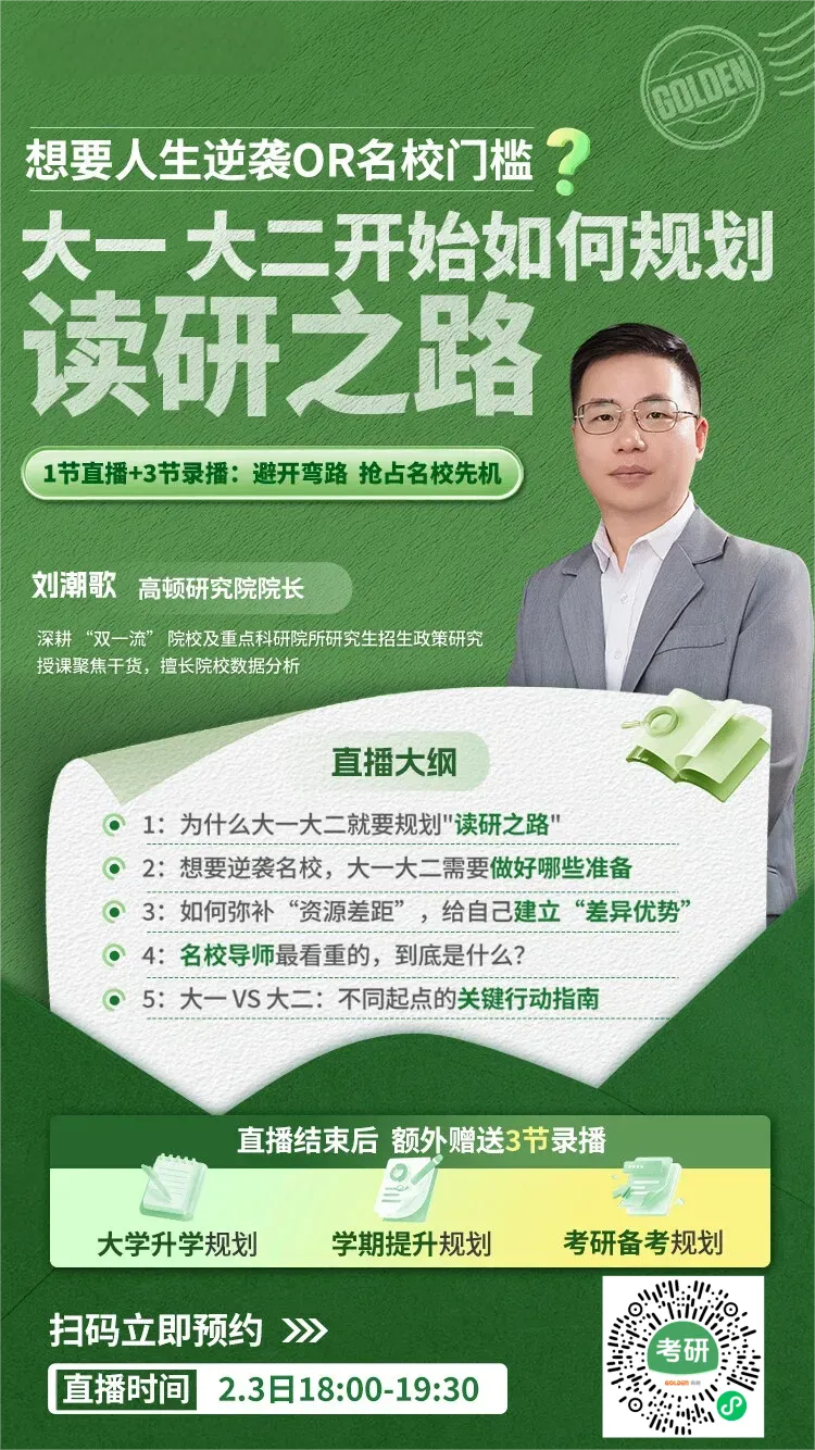 二战、三战的人越来越多,问题到底出在哪里?我们整理了近百份往届学员的复盘,总结了数千名上岸学员经验,发现一个共性:绝大多数人不是输在大四冲刺,而是大一就犯下的不起眼的错误。那些上岸的人,往往在大一就有了科学的规划和指导。