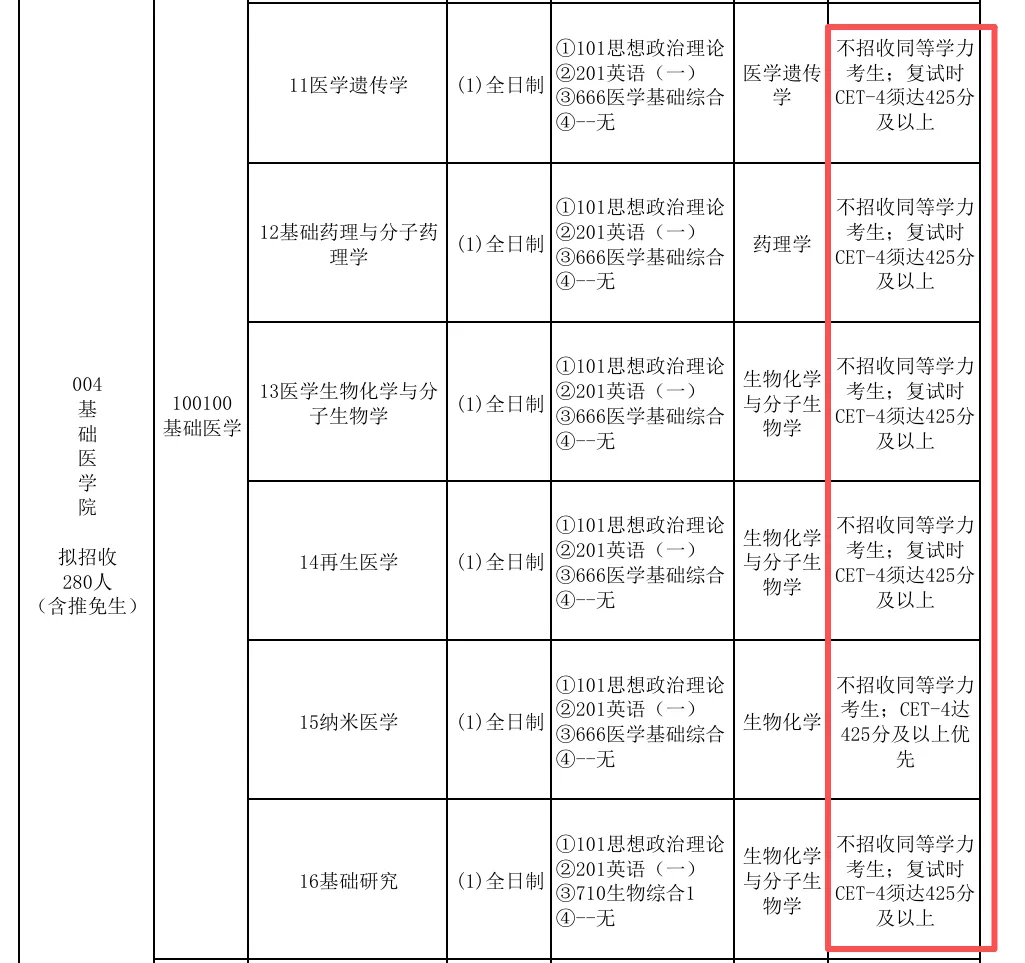 “考研英语就是做阅读、背作文,能过线就行。”这是另一个高频谎言。现在越来越多的院校规定考研报名需要通过四六级,比如中国民航大学、山西医科大学、西北大学生命科学院等都在2025年研究生招生简章中明确了初试报考对四六级成绩的要求。