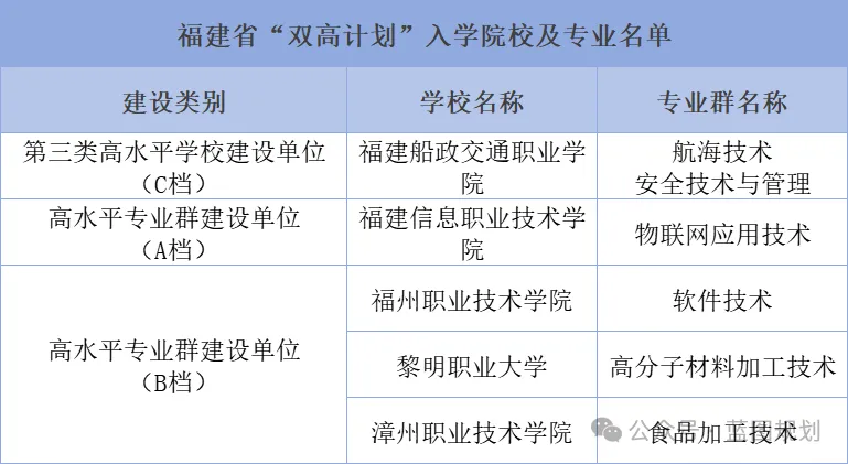 这些院校专业本身实力就较强,加上目前国家层面对职业教育的定位、认可及期待均达到了前所未有的高度;福建省级“双高计划”方案中也明确提到,在政策、人才和资金等方面加大对立项建设单位的支持,更说明入选“双高计划”的院校与专业各方面将得到很大提高,未来可期!