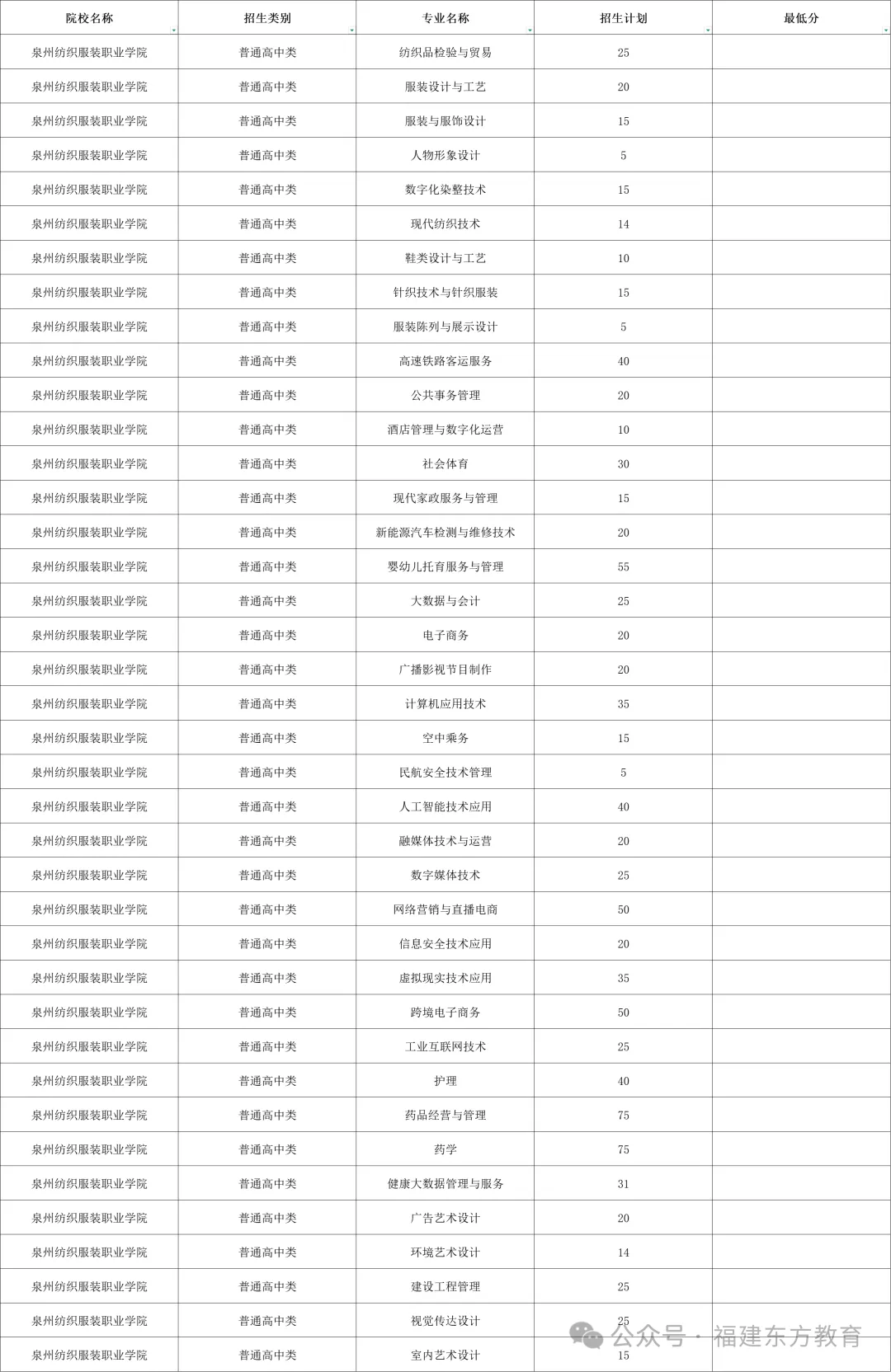 福建省内院校名单:福建信息职业技术学院、闽西职业技术学院、福建林业职业技术学院、泉州医学高等专科学校。