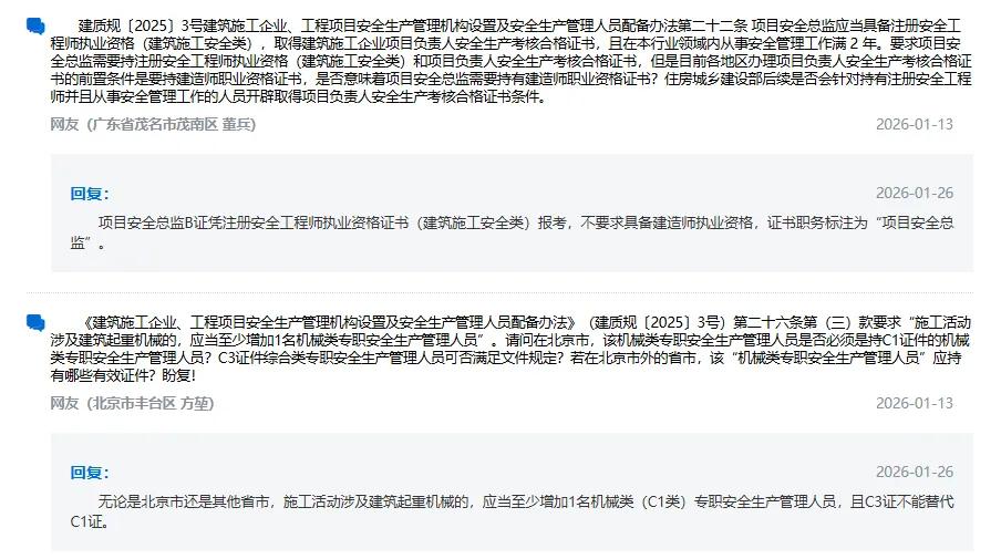 现在江苏省住建厅的政策是,安全员在考取C1证书和C2证书之后,系统里自动合并成为C3证书,而住建部的回复是C3证书不能替代C1证书,针对这个问题,后续可以关注省住建厅的相关政策和说明,此号也会及时更新相关内容。