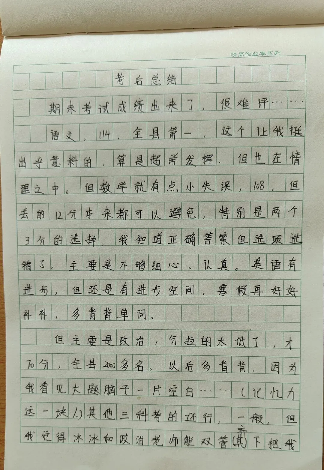 上午我们上班,让在家的孩子写了考试总结。这个寒假,继续努力,加油!