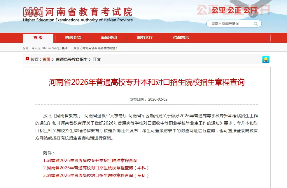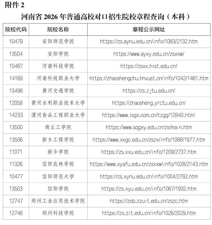 1.河南省2026年普通高校对口招生院校章程查询(本科)