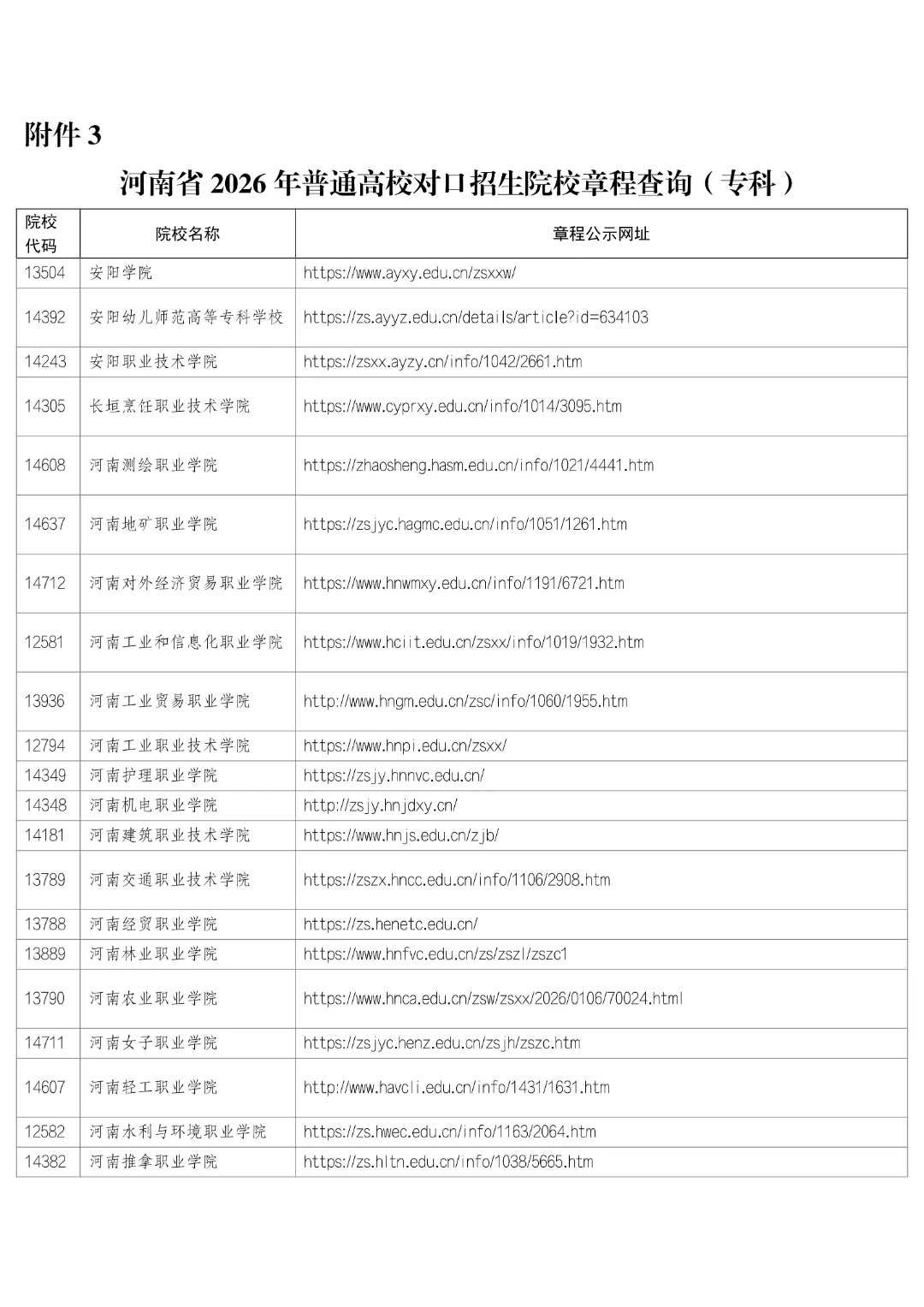 2.河南省2026年普通高校对口招生院校章程查询(专科)