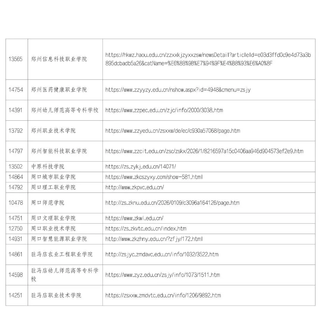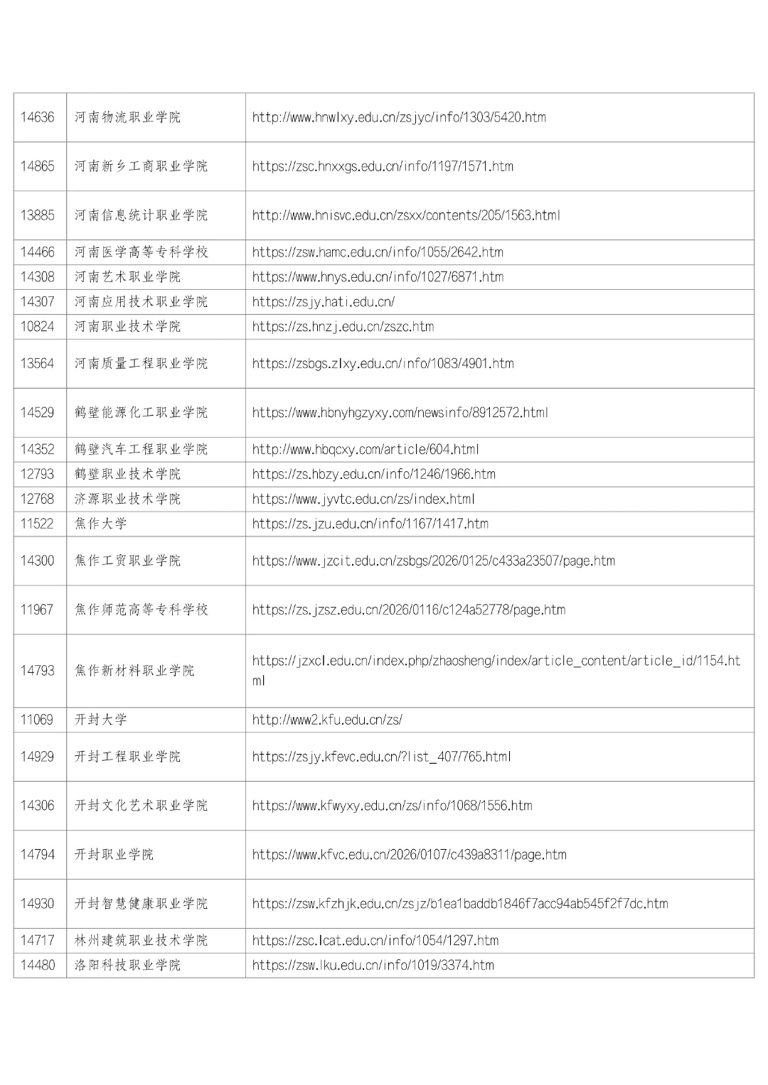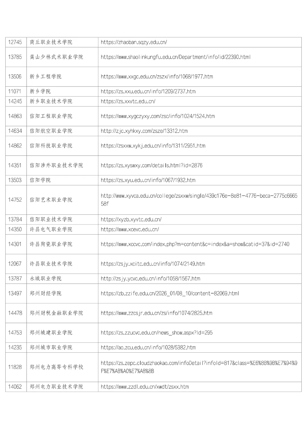 | 河南工业和信息化职业学院 | https://www.hc iit.edu.cn/zsxx/info/1019/1932.htm | ||