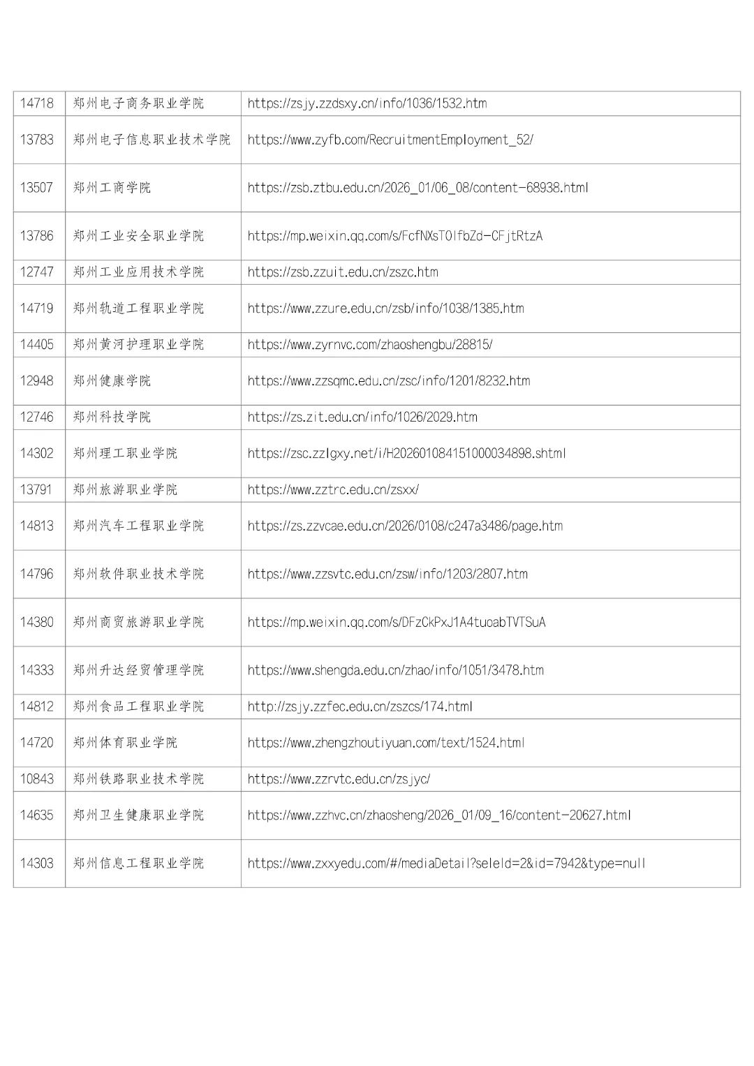 | 焦作工 贸职业学院 | https://www.jzcit.edu.cn/zsbgs/2026/0125/c433a23507/page.htm | ||