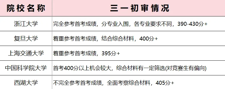 高水平三 一 (上交大、复旦、浙大、国科大、西湖大学)初审往往要参考首考成绩。
