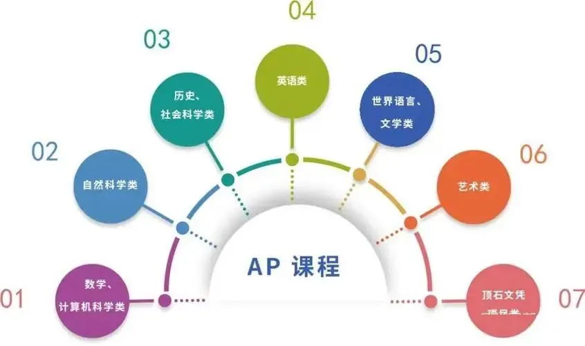 AP、ALevel、IB被称为全球公认的三大主流国际课程体系。AP通常适合申请美国方向的学生,今天我们就来讲一下AP课程整体介绍,AP到底是什么呢?AP课程(Advanced Placement)也称美国大学先修课程,由美国大学理事会(College Board)主办,是面向高中生开设的相当于大一水平的课程。学生可选修部分美国大学基础课程,以提前获得美国大学学分,是申请大学时的加分项。适用于高中9-12年级学生,也适合计划申请美国、加拿大、英国等国际本科的学生。全球超60个国家、5000多所大学认可AP学分,含美加英澳新等多国名校。AP课程共有38门学科,分为7大类,分别为艺术类、英语类、历史与社会科学类、数学与计算机科学类、自然科学类、世界语言与文学类,以及顶石文凭项目类。国际学校会根据实际情况选择开设。1、艺术类:平面工作室艺术设计、立体工作室艺术设计、艺术史、工作室绘画、音乐理论