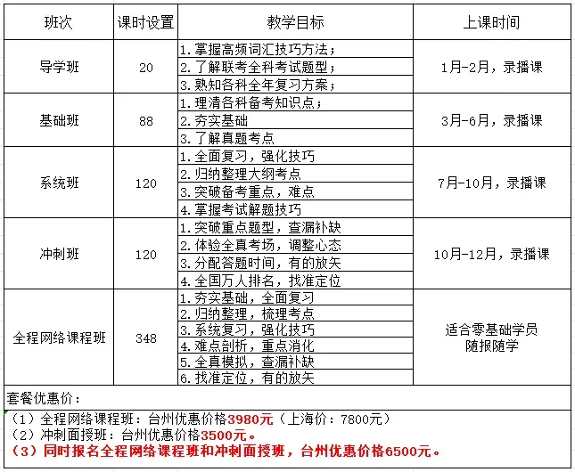 辅导项目 | 台州点价格 | 报名优惠价格 |