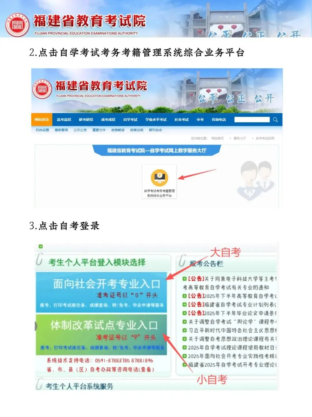 登录福建省教育考试院官网→ 数字服务大厅 → 自学考试 → 考务考籍管理系统